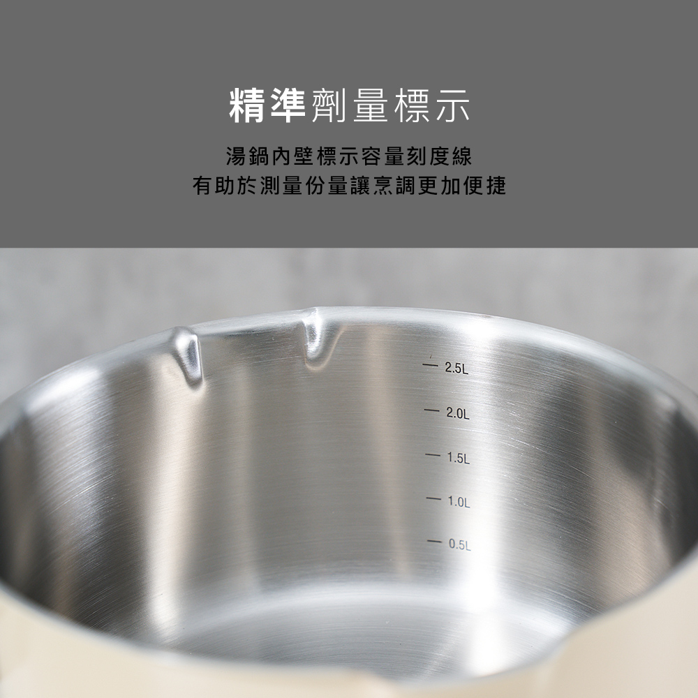 5.精準劑量標示,湯鍋內壁標示容量刻度線。
