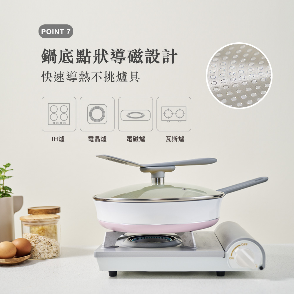 4.鍋底點狀導磁設計,快速導熱不挑爐具
