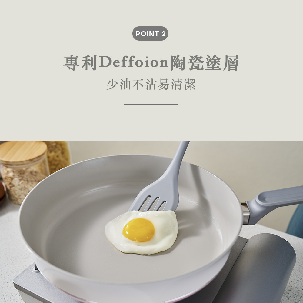 1.內層使用專利(Deffoion)陶瓷塗層,少油不沾易清潔