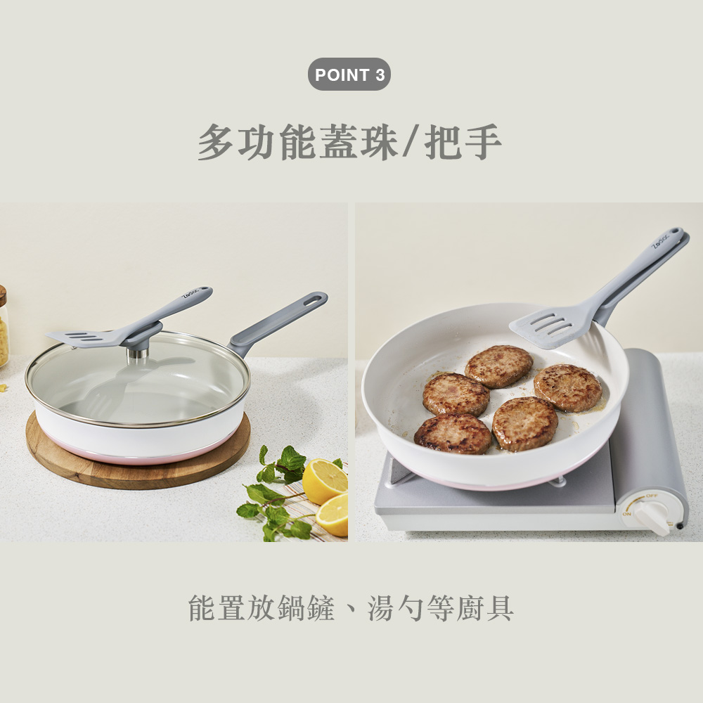 2.多功能蓋珠/把手,能置放鍋鏟、湯勺等廚具