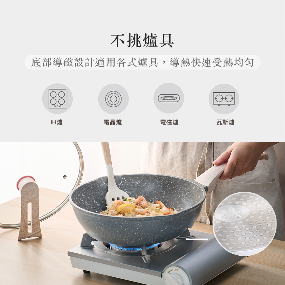 4.鍋底點狀導磁設計,快速導熱不挑爐具