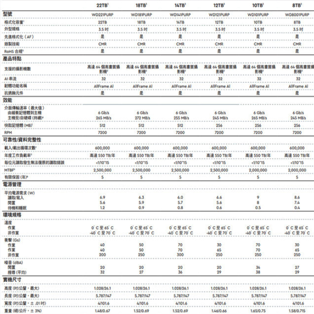 8TB –22TB1 型號支援高達 550 TB/年的工作負載率3。