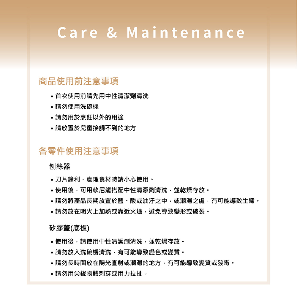 矽膠蓋(也可作為墊板使用),在刨削時可放在容器底部作為防滑墊,讓操作更穩定。使用後也能作為保鮮蓋,直接蓋住容器保存食材;收納時,能當作防塵蓋使用,一蓋多用,實用又便利。
