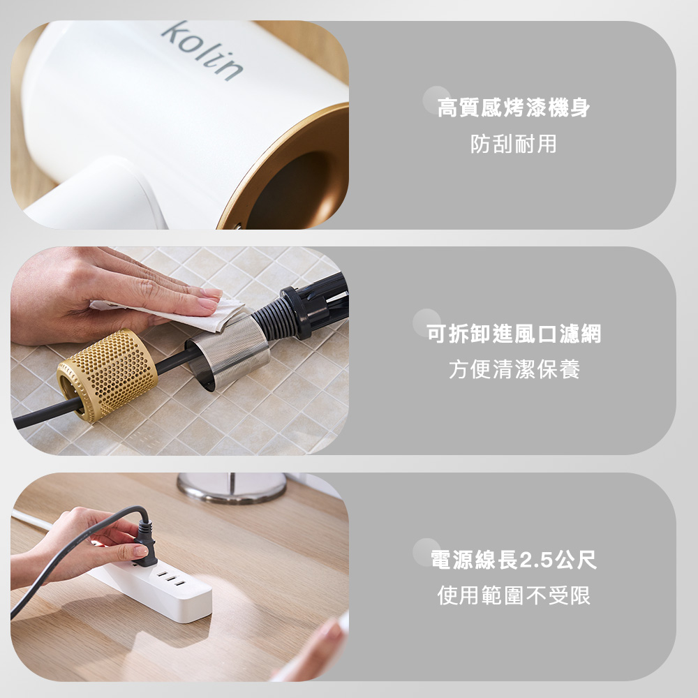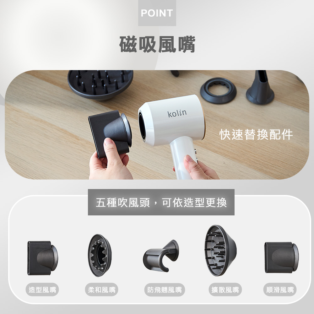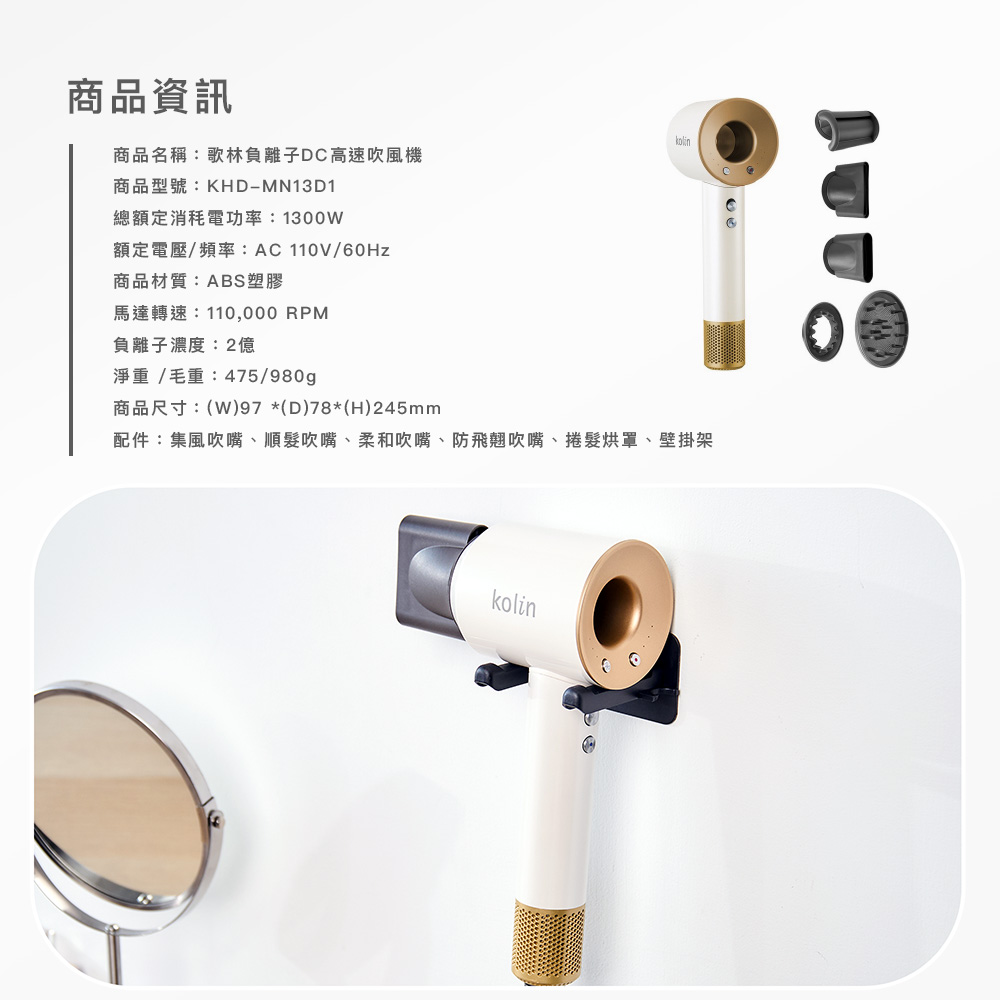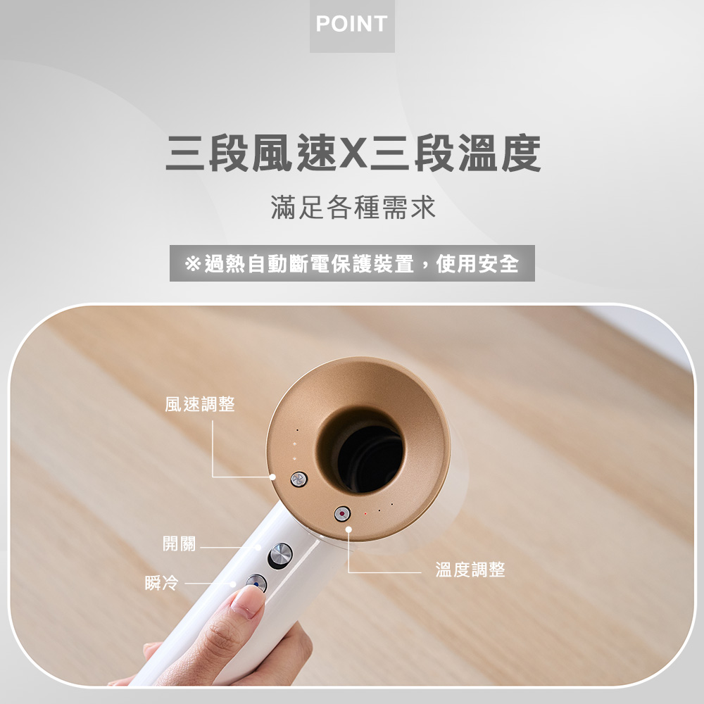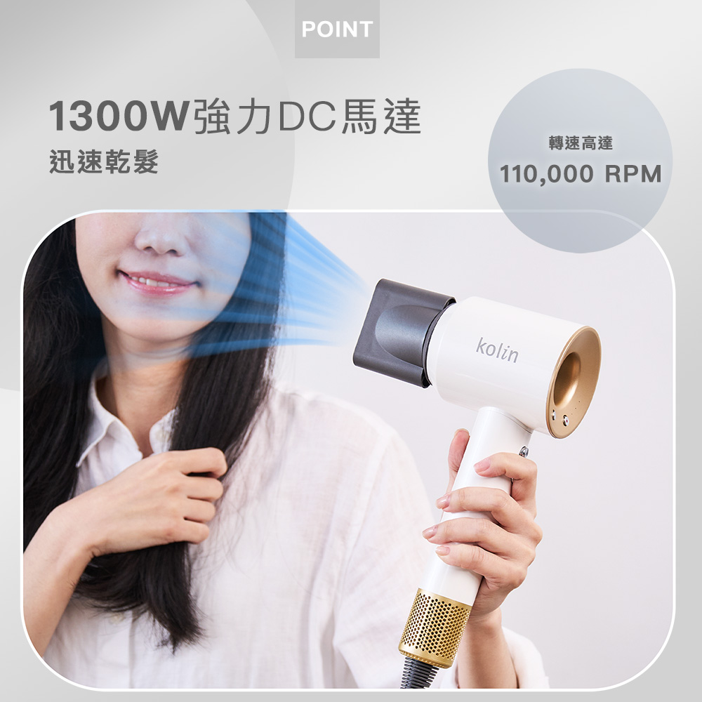1. 1300W強力DC馬達,轉速高達110,000 RPM,迅速乾髮。
