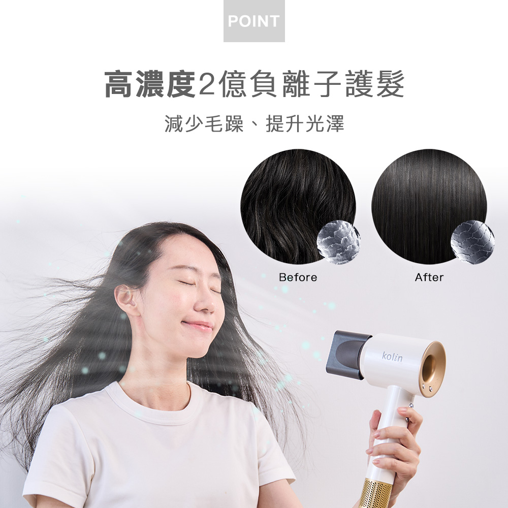 2. 高濃度2億負離子護髮,減少毛躁、提升光澤。