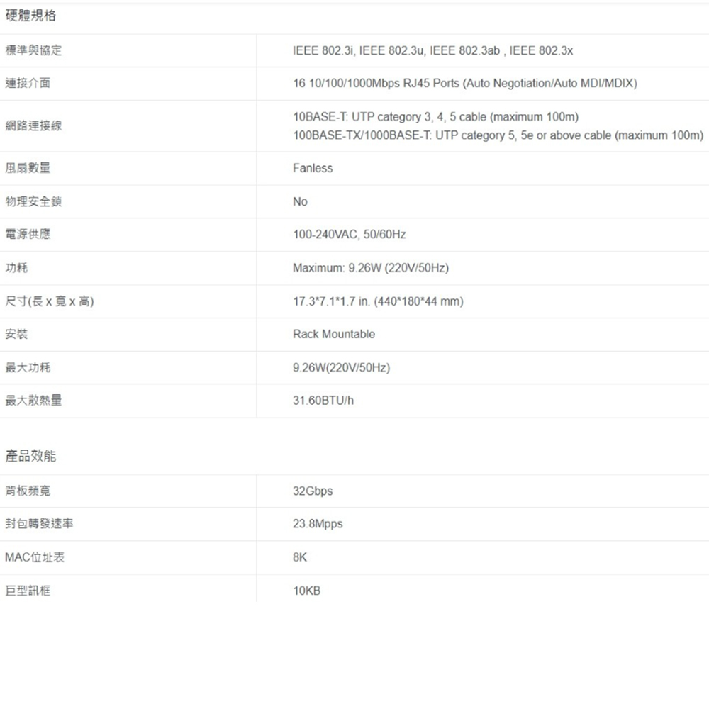 16 個 10/100/1000Mbps RJ45 連接埠。
