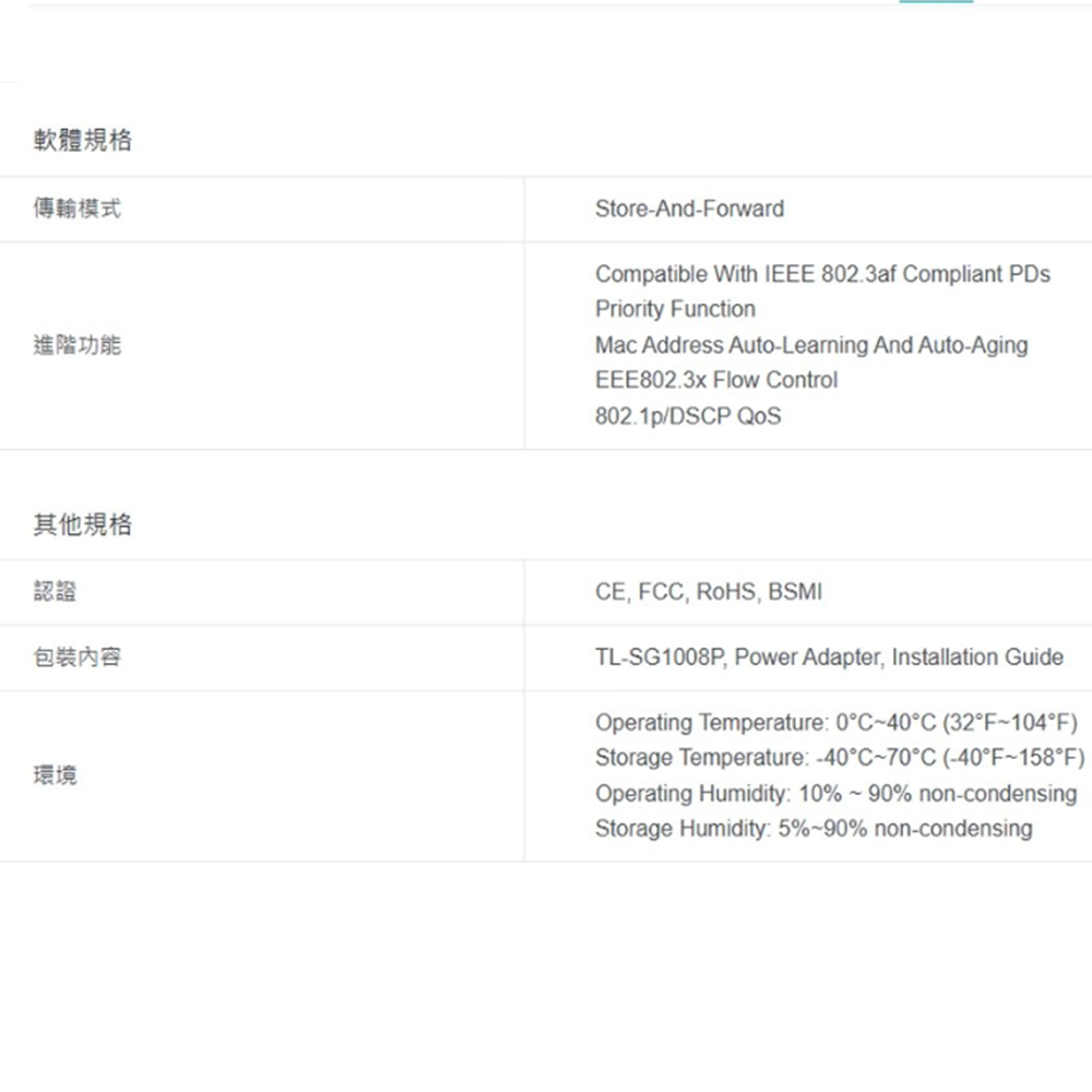 TP-Link】TL-SG1008P 8 埠 Gigabit 桌上型交換器(1PCS)