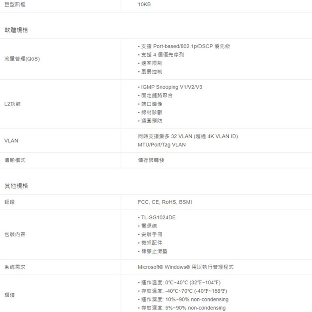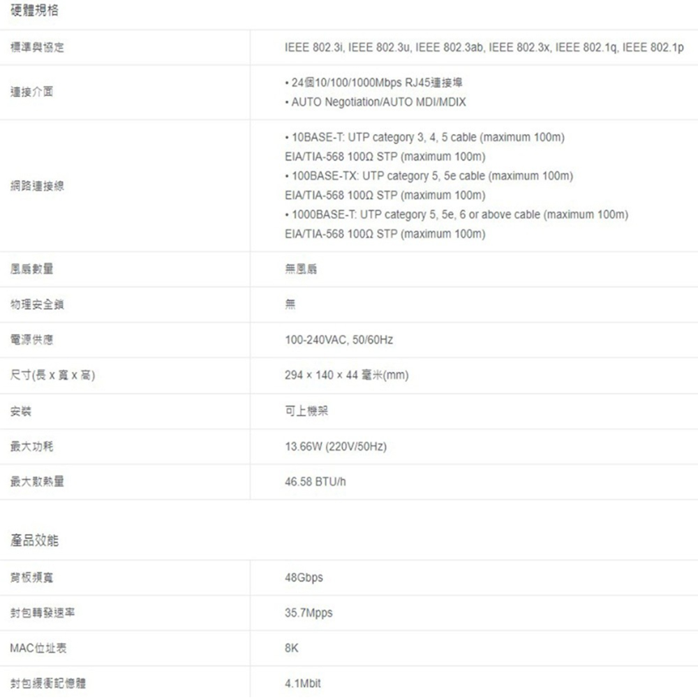 24 x 10/100/1000Mbps RJ45連接埠。