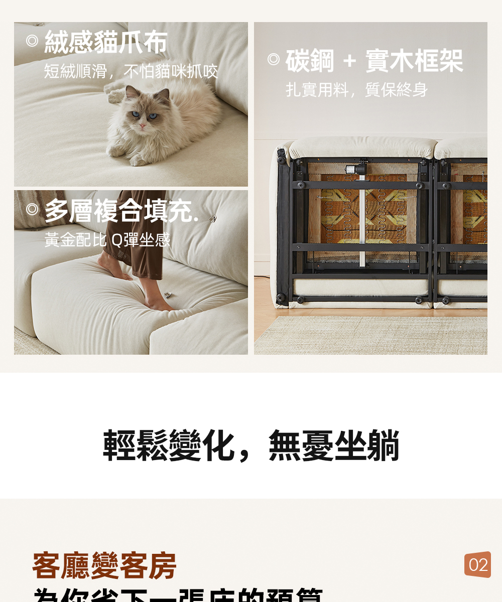 obis】雲朵智能電動沙發/沙發床200cm雙電動(【obis】A2423@118658)