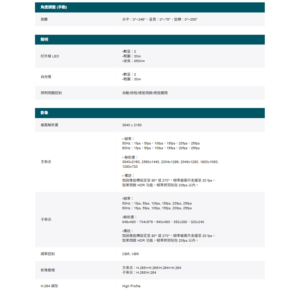 4K (8MP) 超高 HD 畫質和全天候全彩。