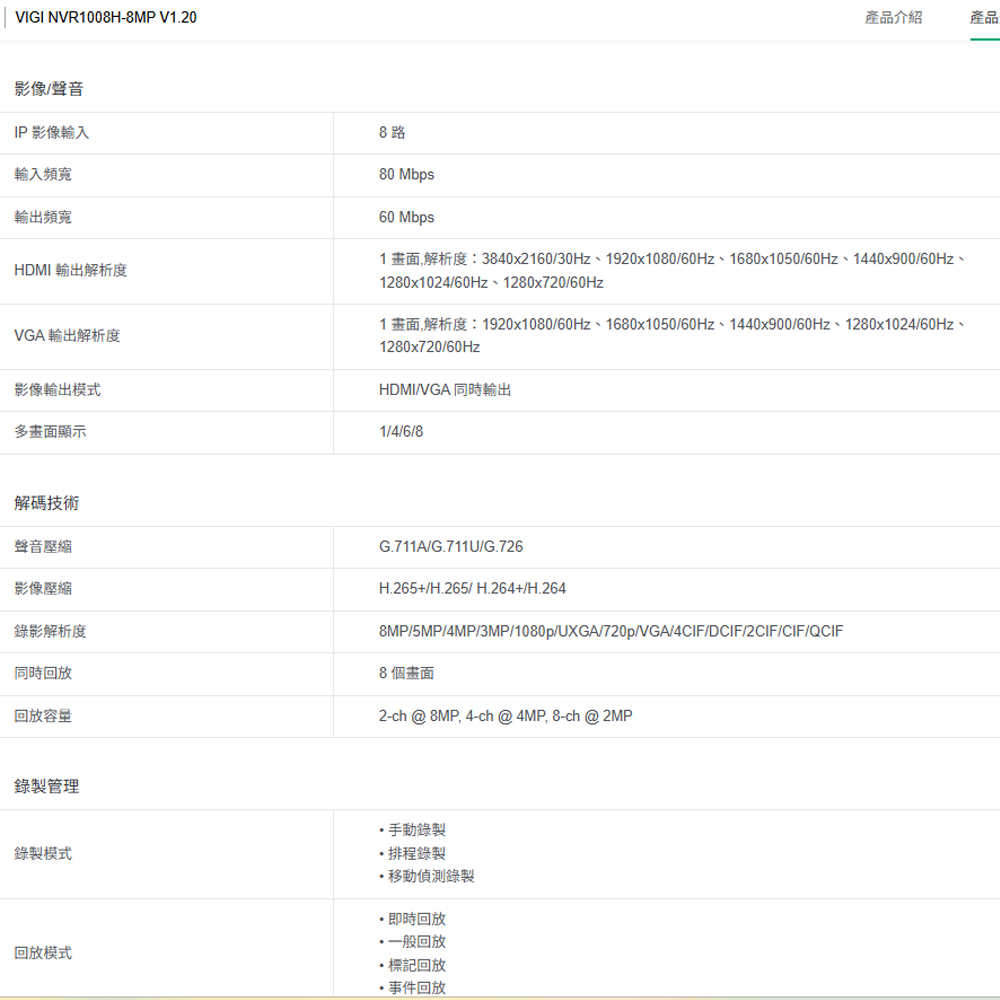 TP-Link】組合 VIGI NVR1008H-8MP +InSight S225 2MP全彩網路攝影機*6(1PCS)