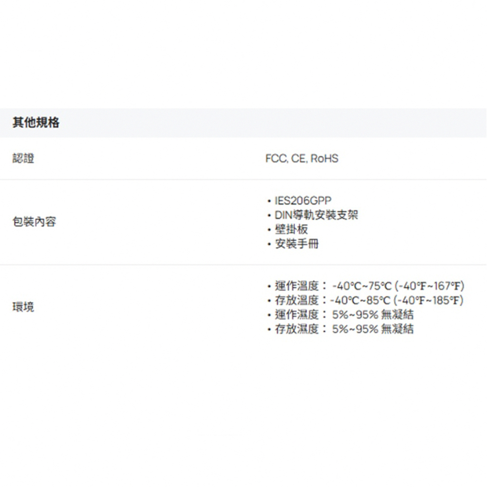 TP-Link】IES206GPP Omada 6埠 Gigabit 工業級簡易管理型交換器(1PCS)