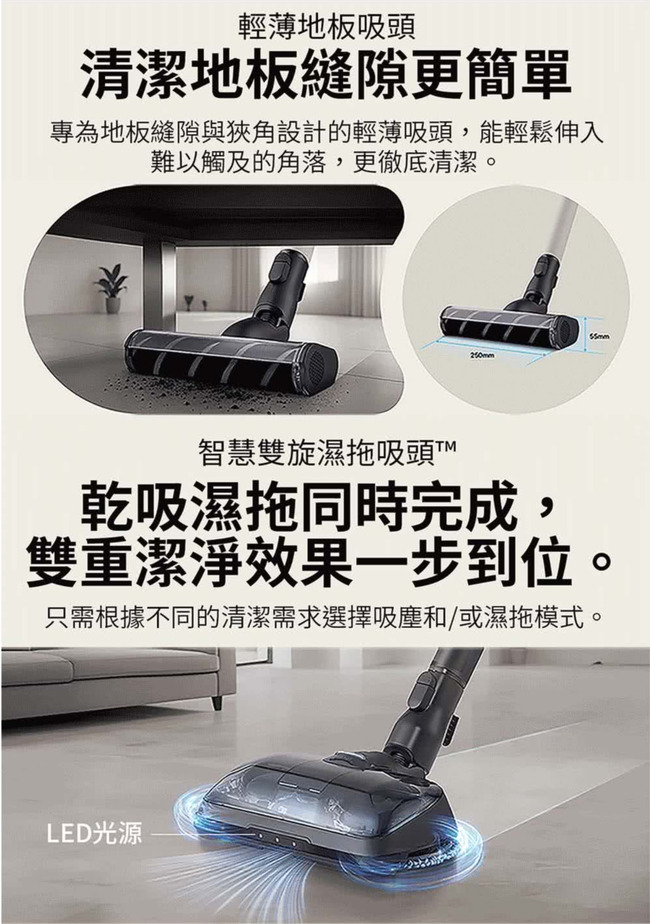智慧雙旋濕拖吸頭