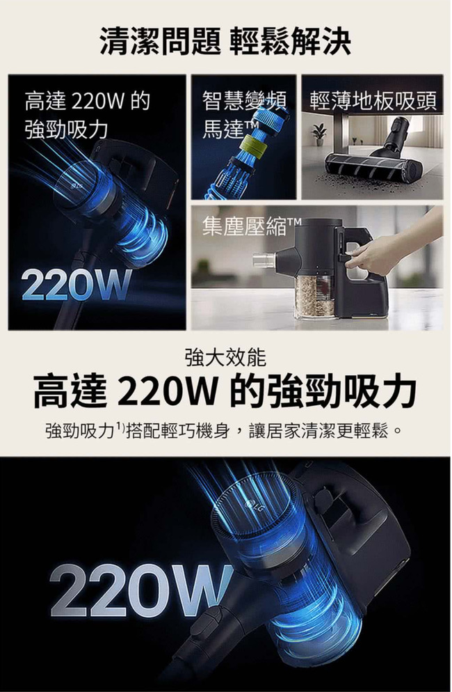 高達 220W 的吸力