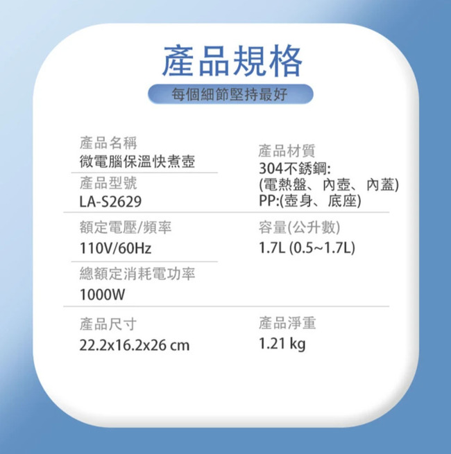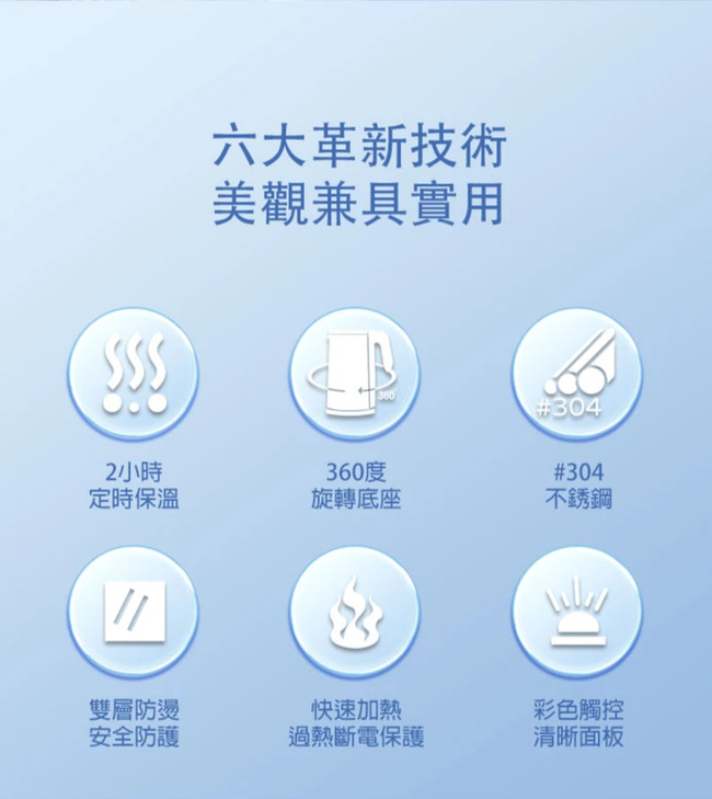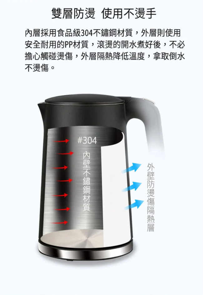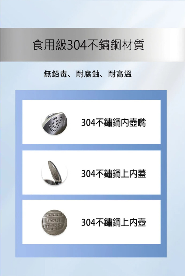 •材質:電熱盤、內壺、內蓋:304不鏽鋼,壺身、底座:PP