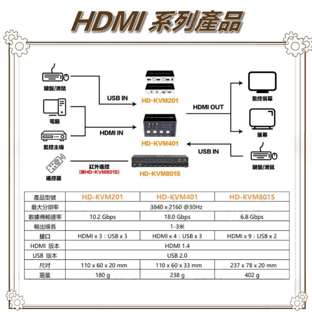支援 HDMI 1.4 版,自動調配 EDID/HDC 解密,適應多種複雜環境。