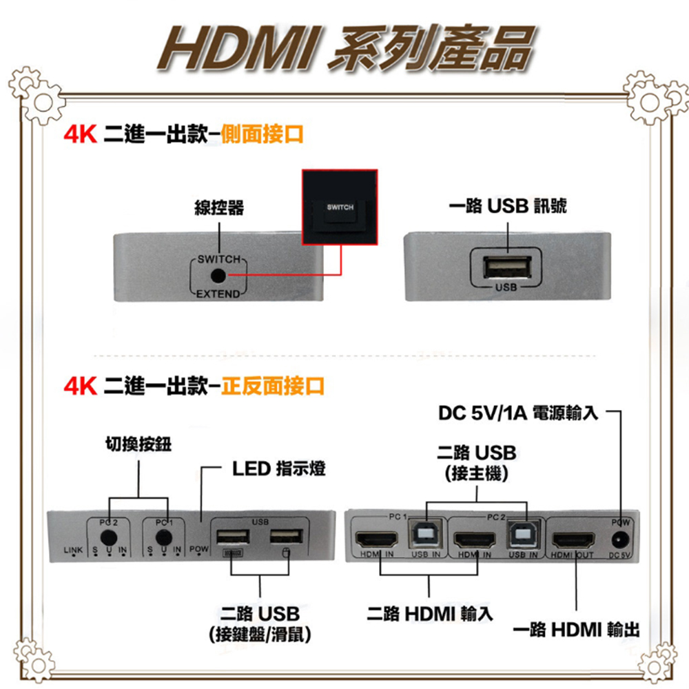 將二台(2x1)電腦主機共用一套螢幕、鍵盤及滑鼠自由同步切換。
