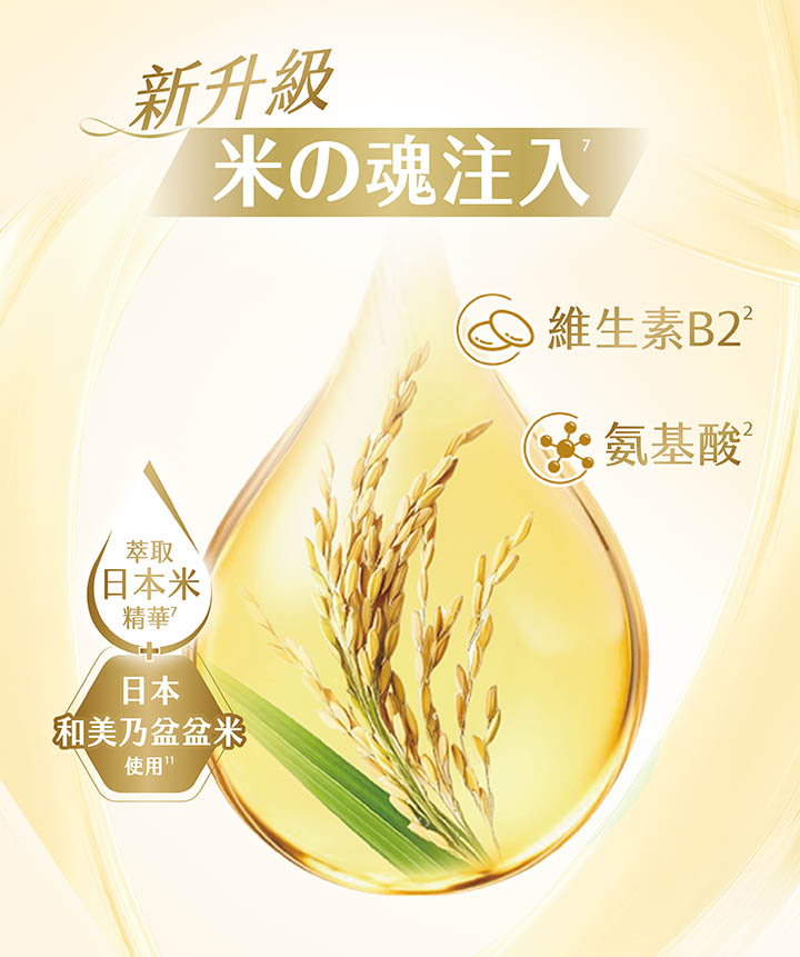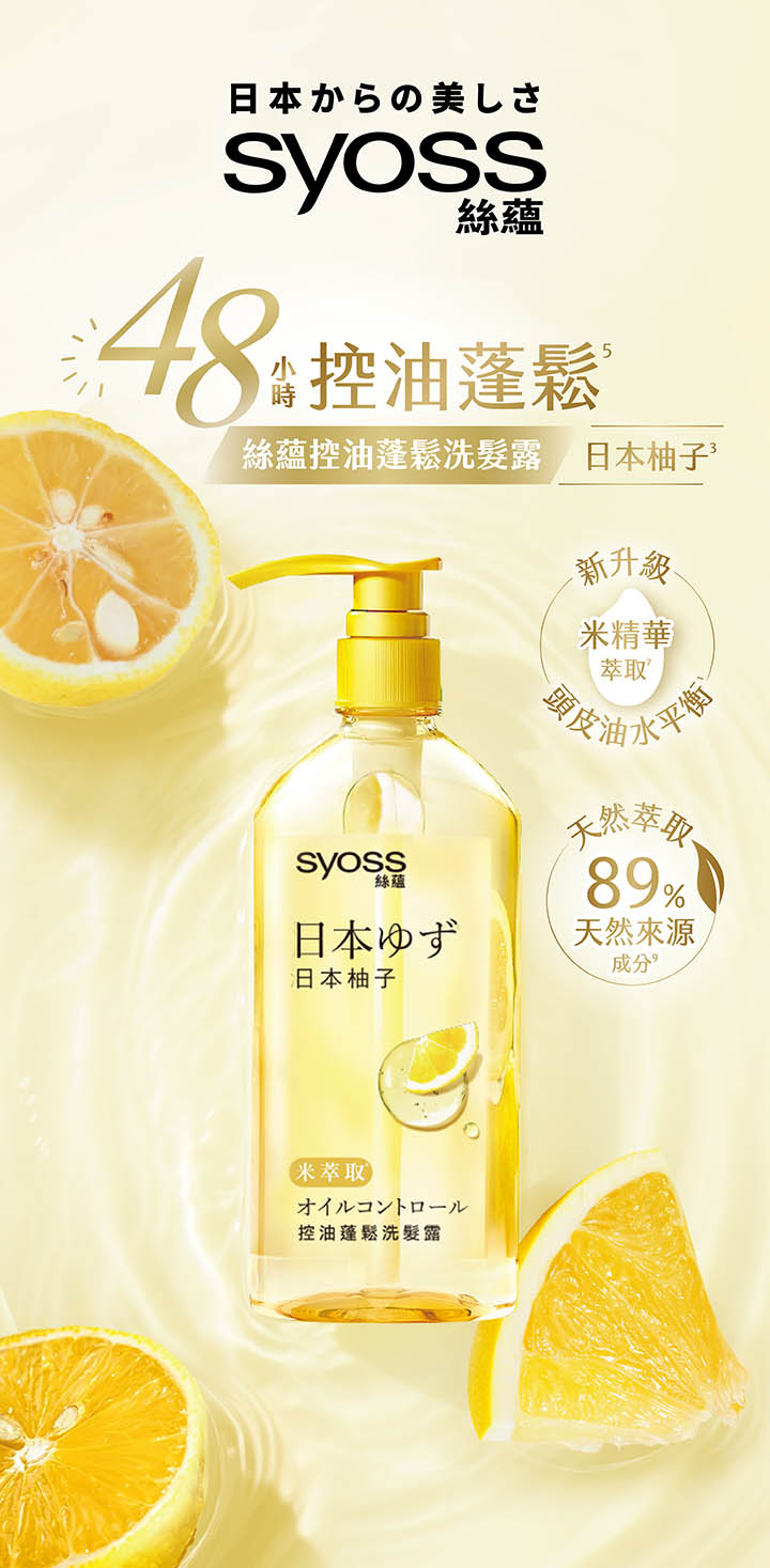產品特別添加新升級的日本米精萃(選用日本和美乃盆盆米),結合維生素 B2 與氨基酸,能有效調節頭皮油水平衡,達到長效控油效果。柚子護髮幫助48小時持久長效保濕。