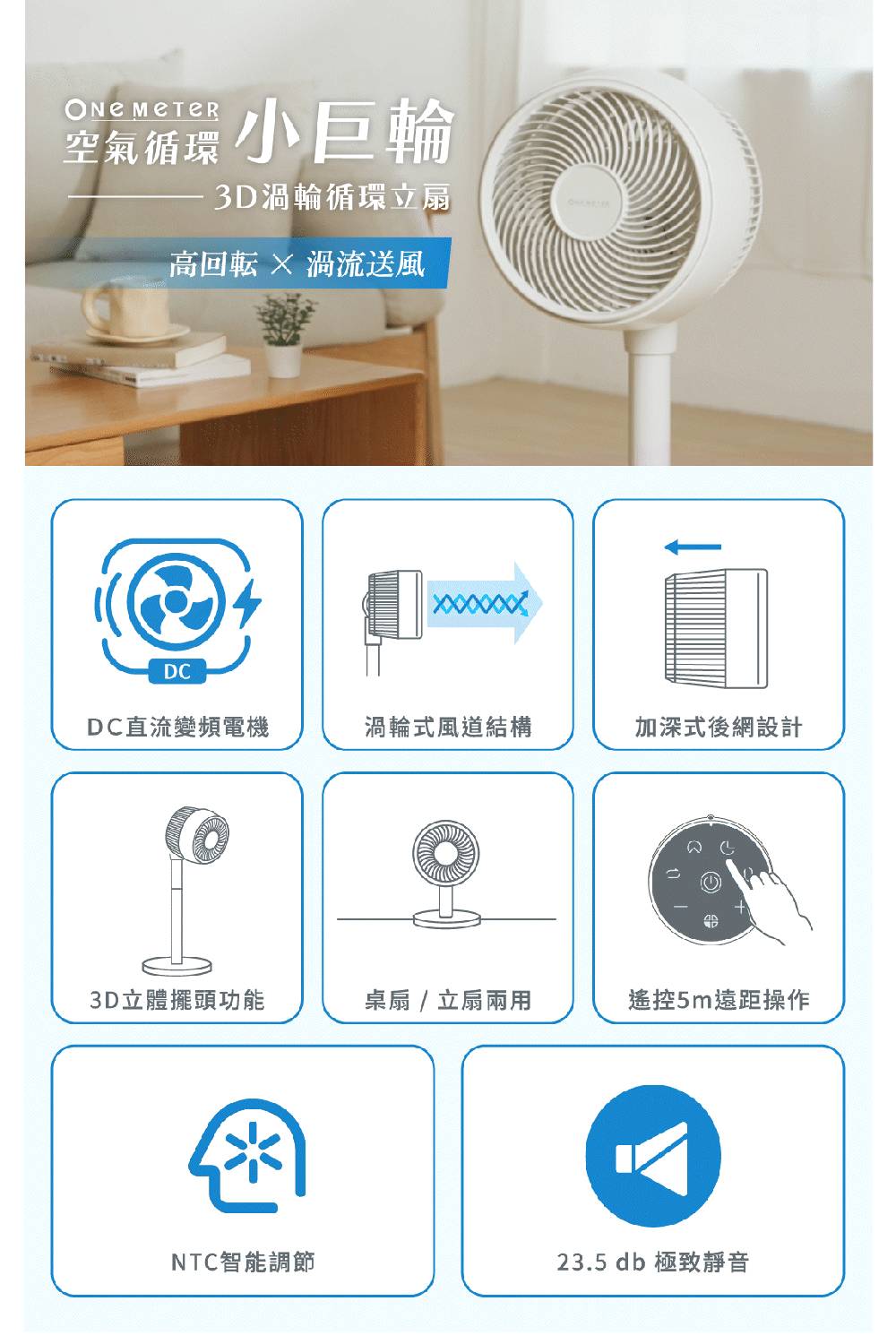 ◎品名:【one-meter】10吋3D渦輪循環桌立扇
