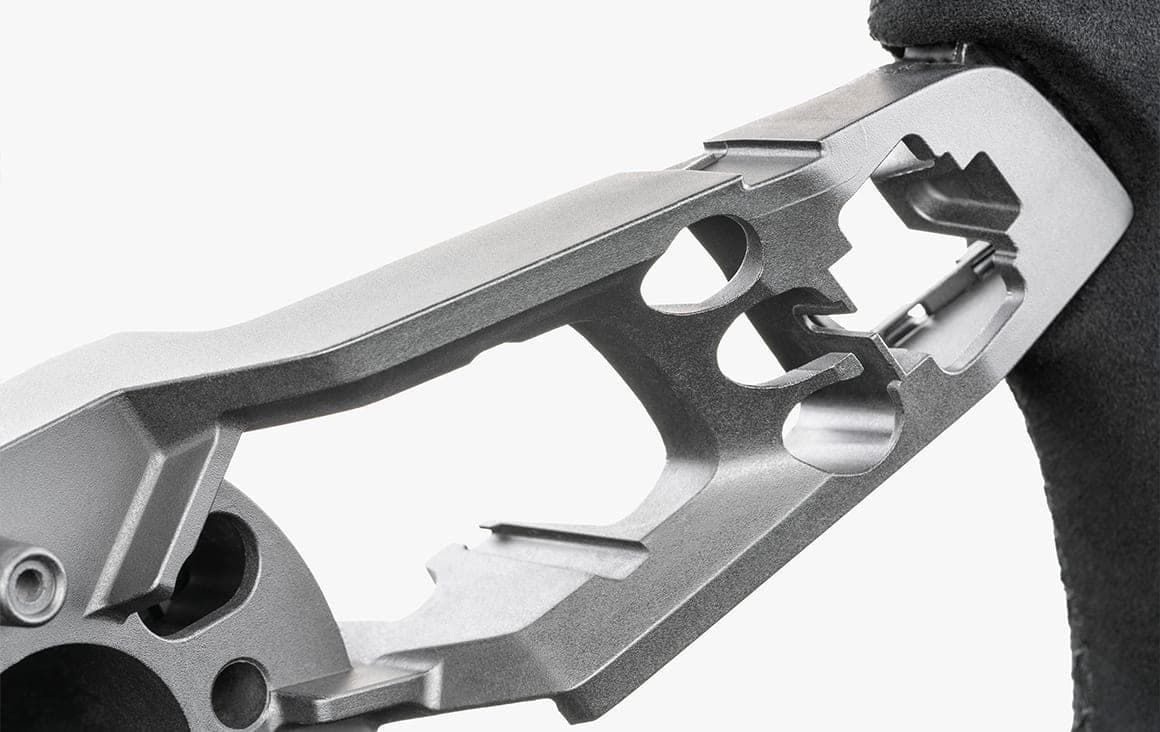 車輪結構採用壓鑄鋁材質,確保輕盈和堅固,並保留了原始概念設計中令人驚豔的輻條切口。我們全新的 Tactaris 合成絨面革材質經久耐用、舒適且易於清潔。