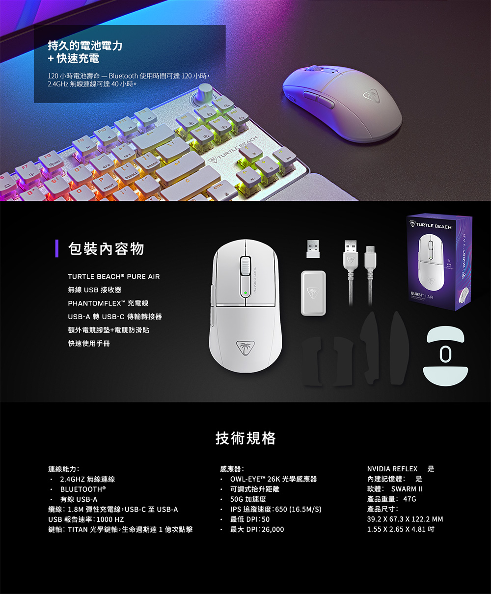 Turtle Beach】Burst II Air 無線電競滑鼠 白色(輕量化26KDPI光學微動)