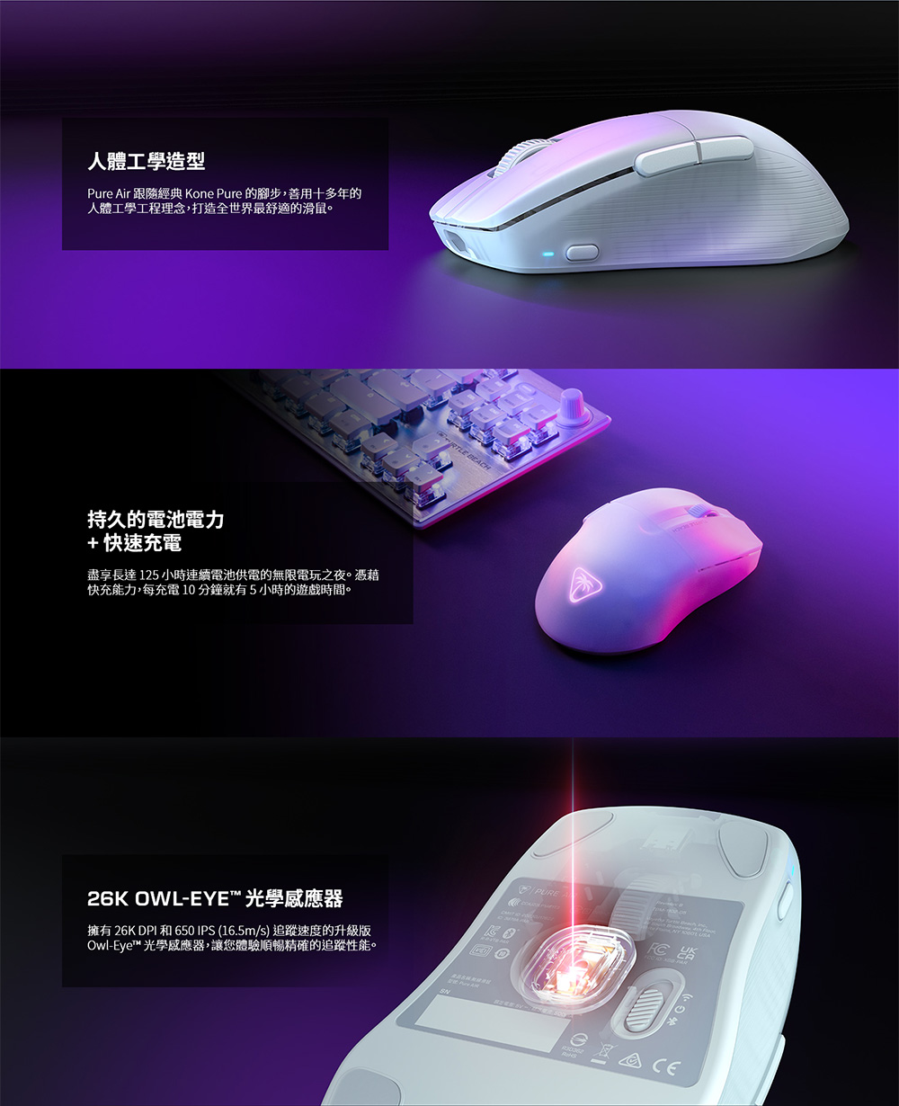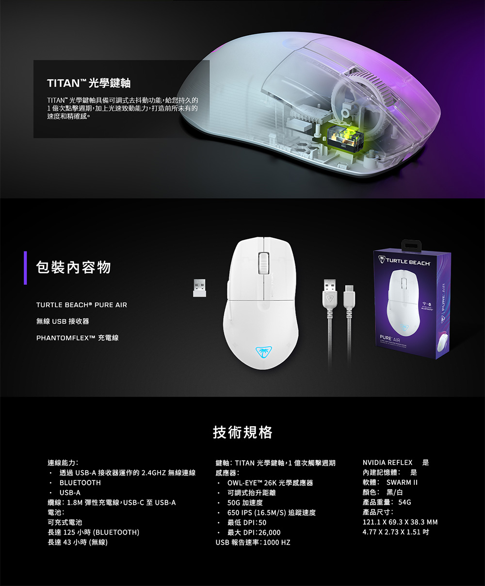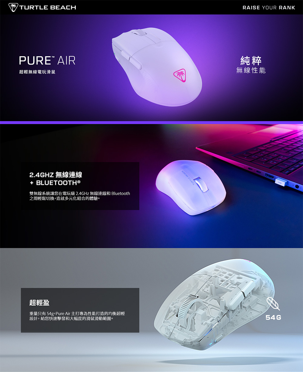 Turtle Beach|Pure Air 輕量化RGB三模無線電競滑鼠 白色