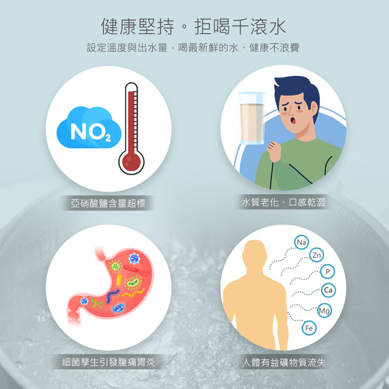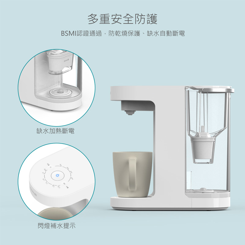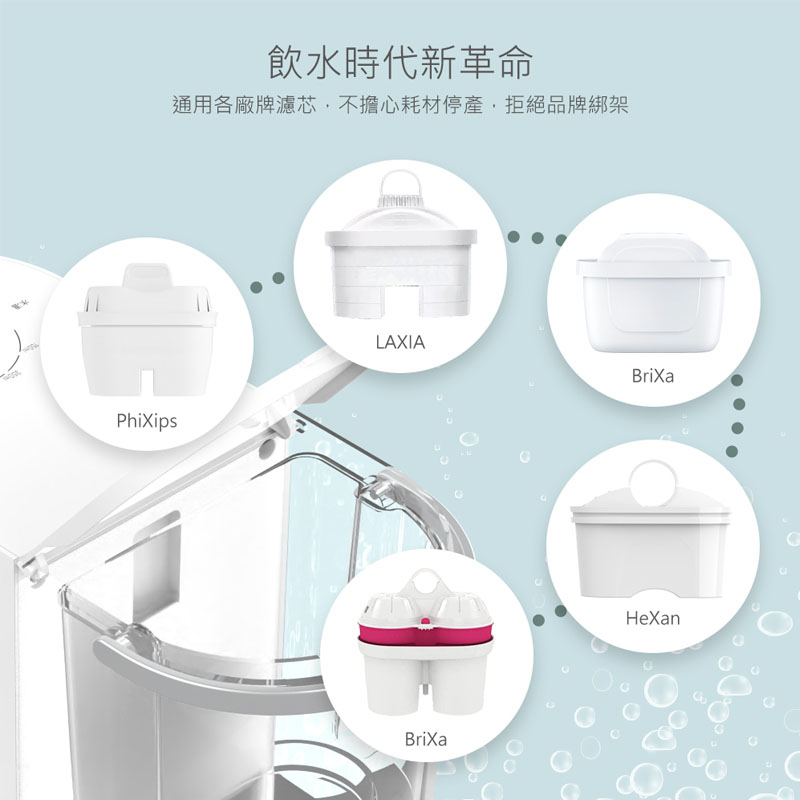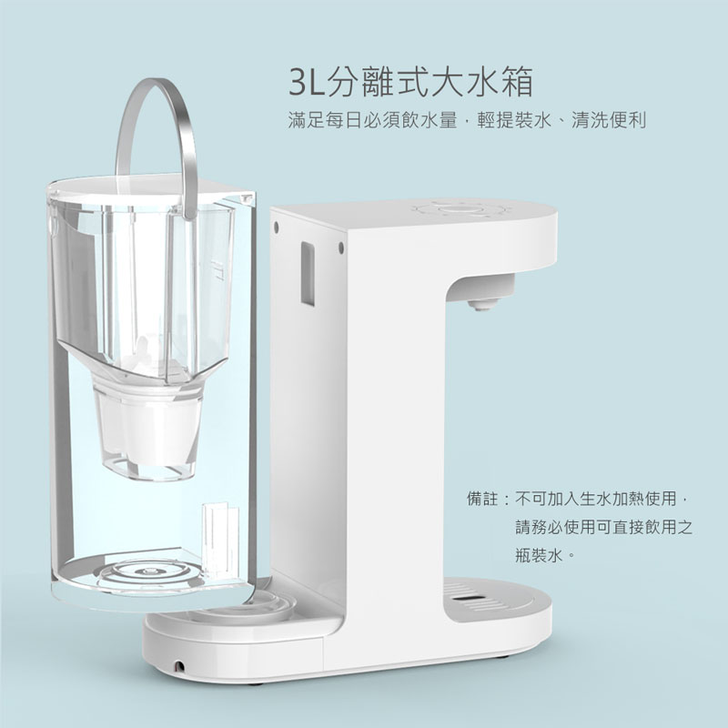 飲水時代新革命,真正通用內托設計,百搭各品牌濾芯,完整過濾零滲漏。3秒加熱出水,健康喝避免千滾水危害。多段水溫/水量設定,3L大水箱,滿足各式生活飲水需求。