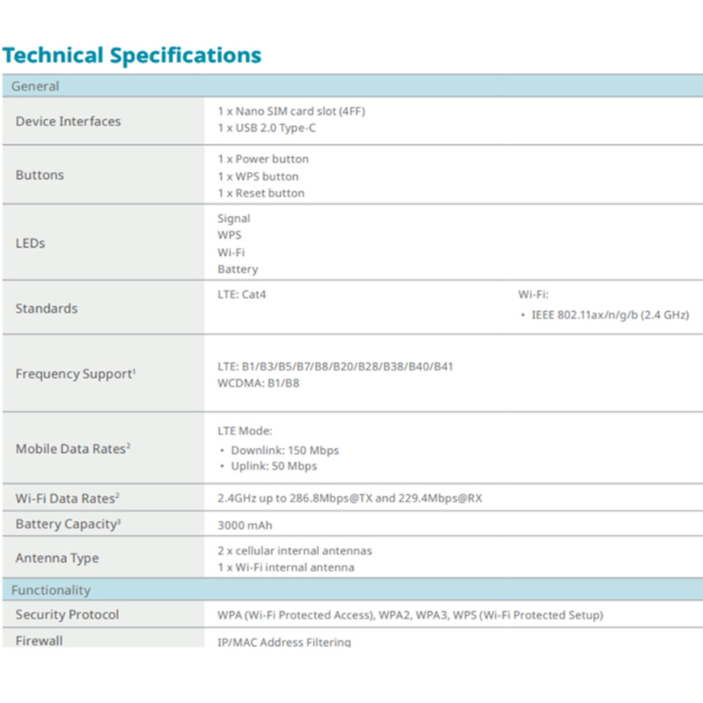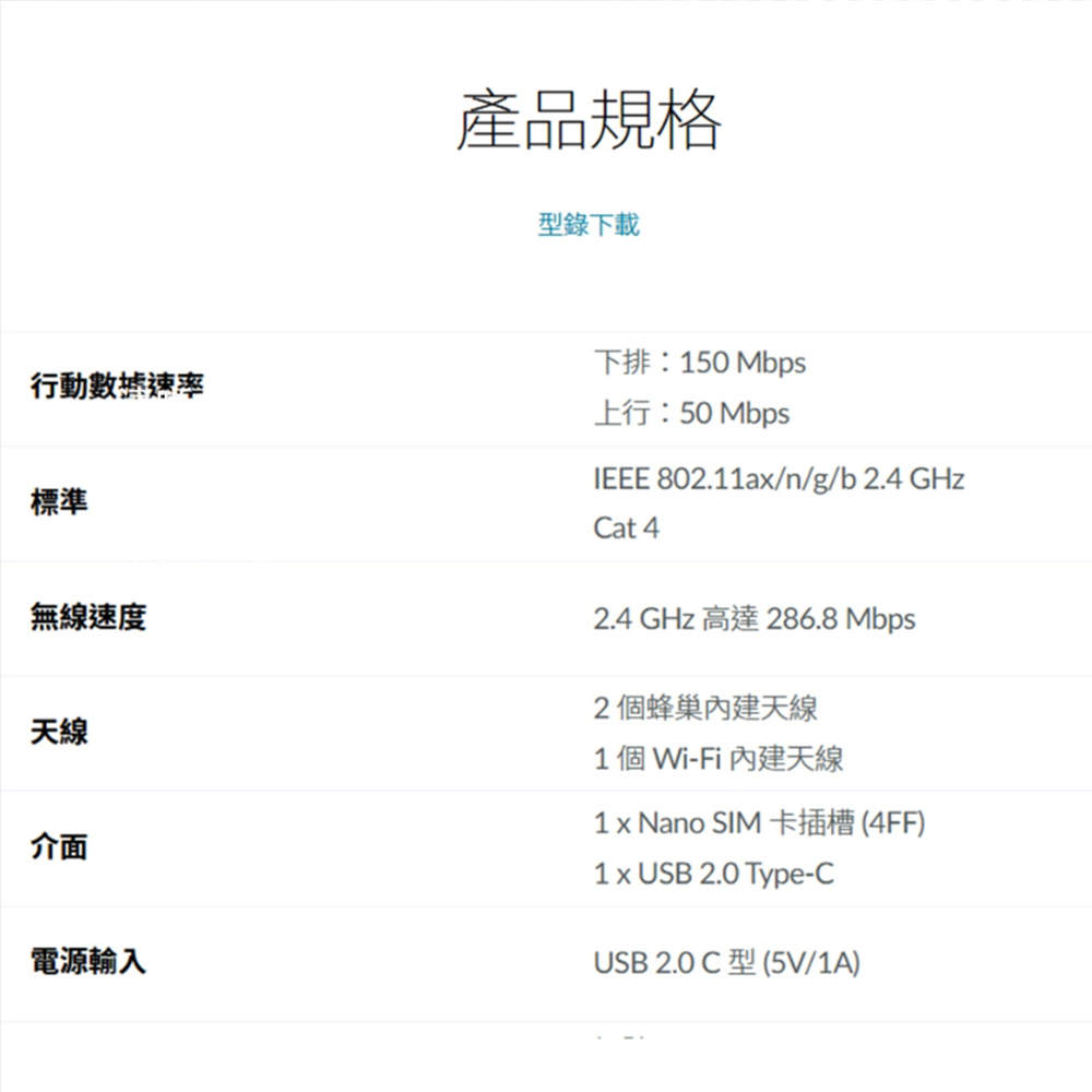 4G LTE連線:支援4G LTE Cat 4,下行速度高達150 Mbps /上行速度高達50 Mbps。
