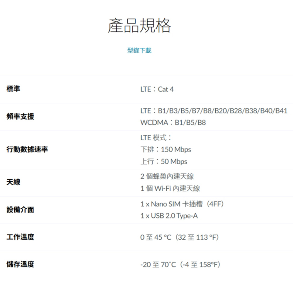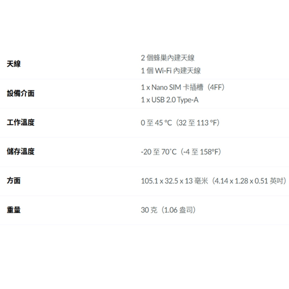 4G LTE連線: 支援Cat 4高速行動網路,下載速度高達150 Mbps,上傳速度高達50 Mbps。