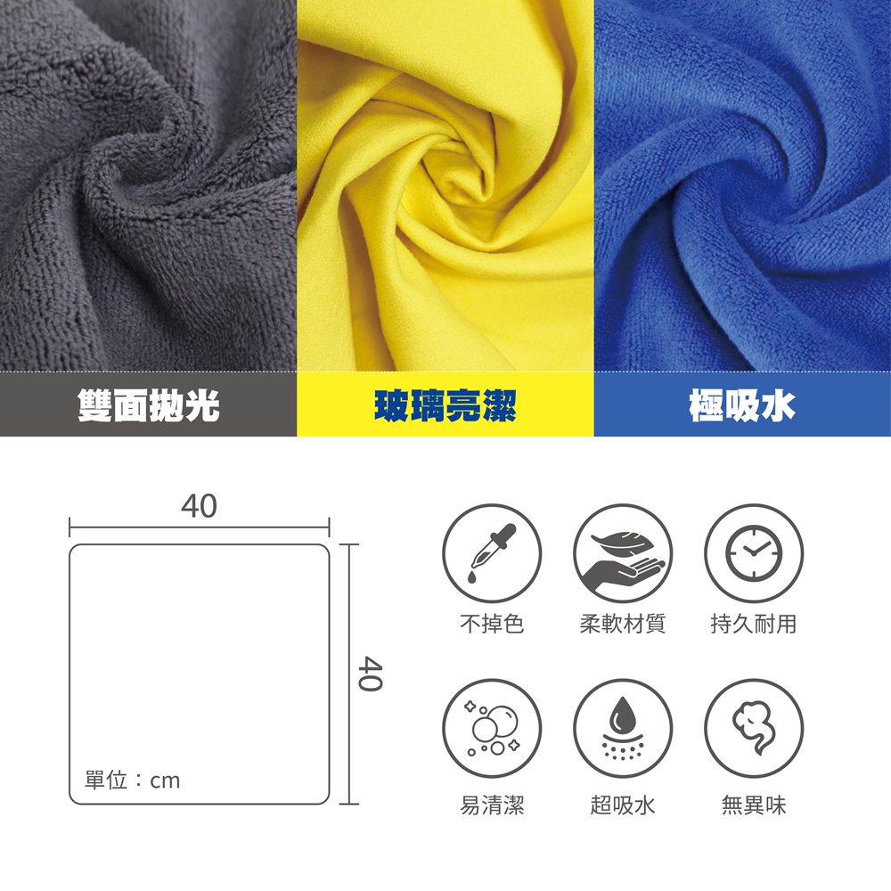 成分&材質 / 玻璃亮潔擦拭布(80%聚酯纖維20%聚醯胺纖維);雙面拋光超細纖維布(80%聚酯纖維20%聚醯胺纖維);車身用超吸水洗車布(80%聚酯纖維20%聚醯胺纖維)