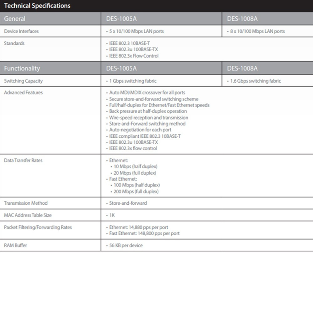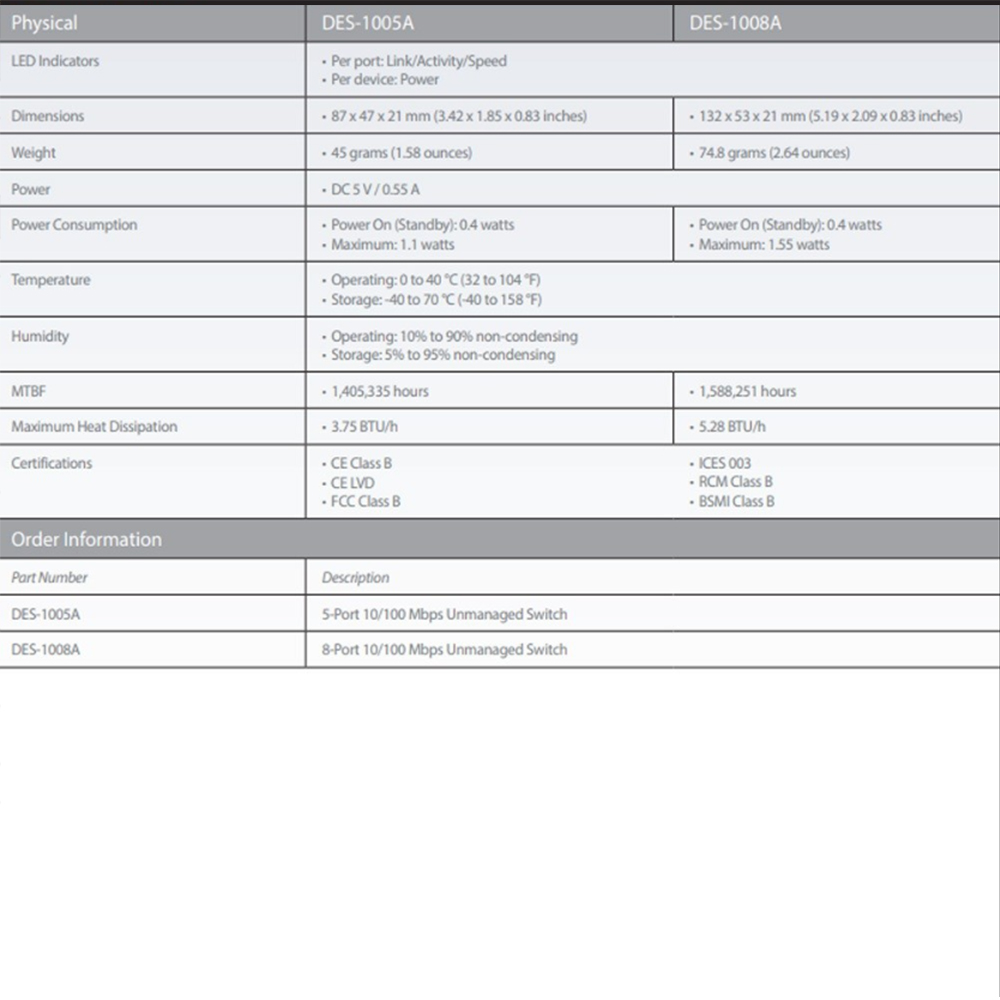 具備5個10/100Mbps RJ-45自動偵測交換埠。
