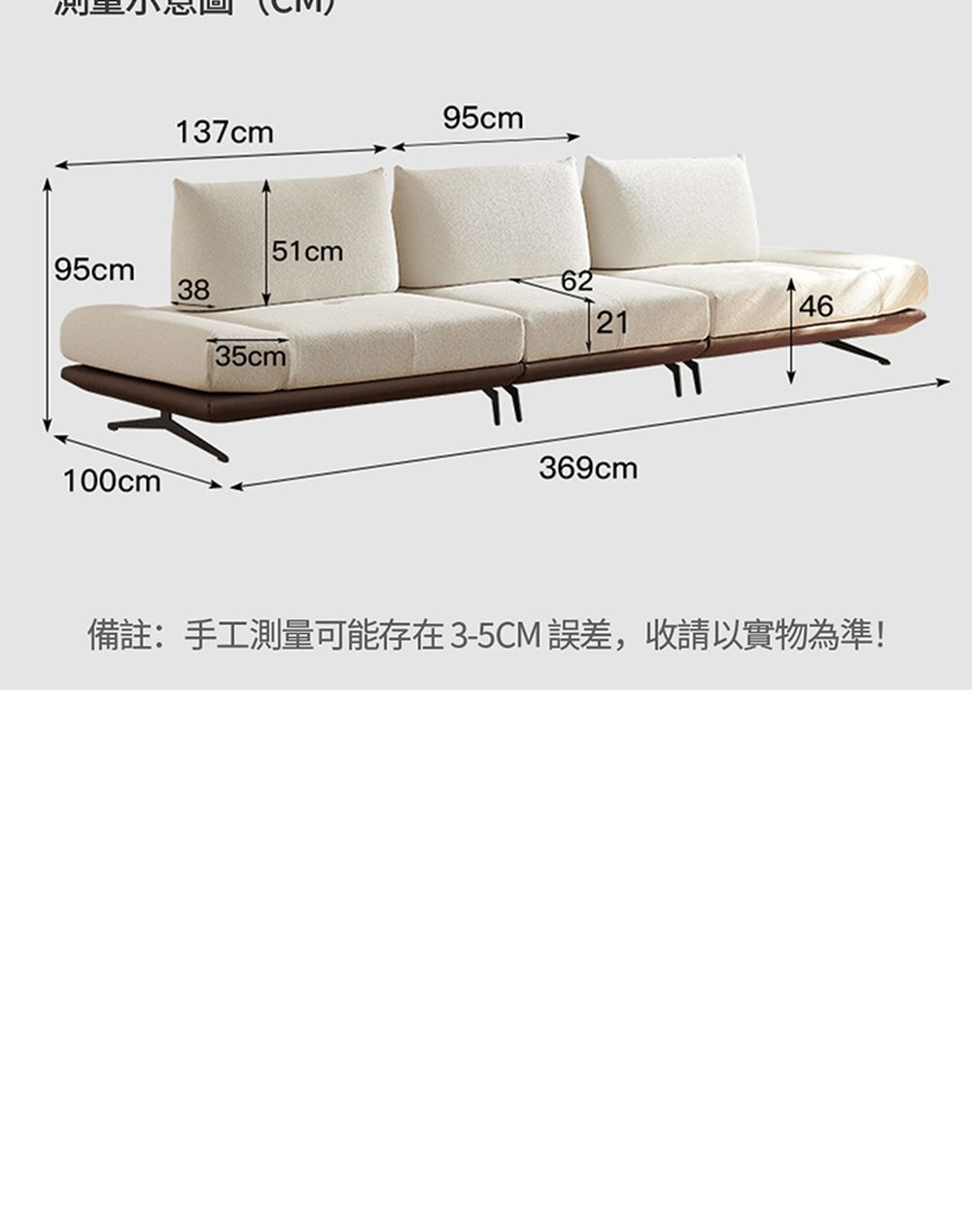 此賣場為274cm大雙人位(寬274*深100*高95cm),另有其他尺寸賣場