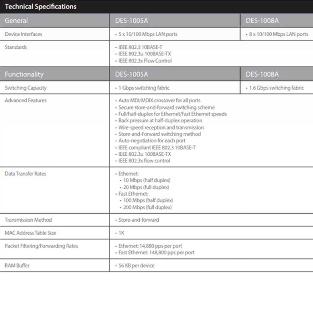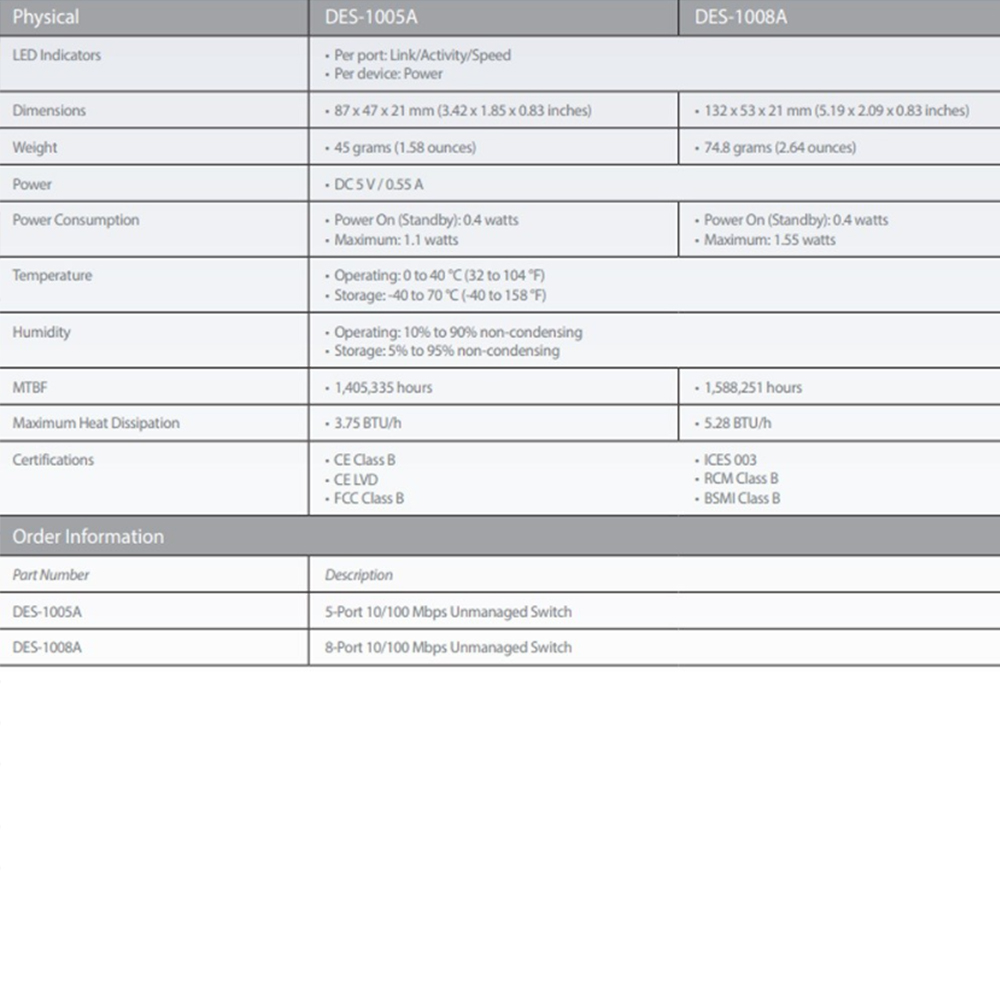 具備5個10/100Mbps RJ-45自動偵測交換埠。