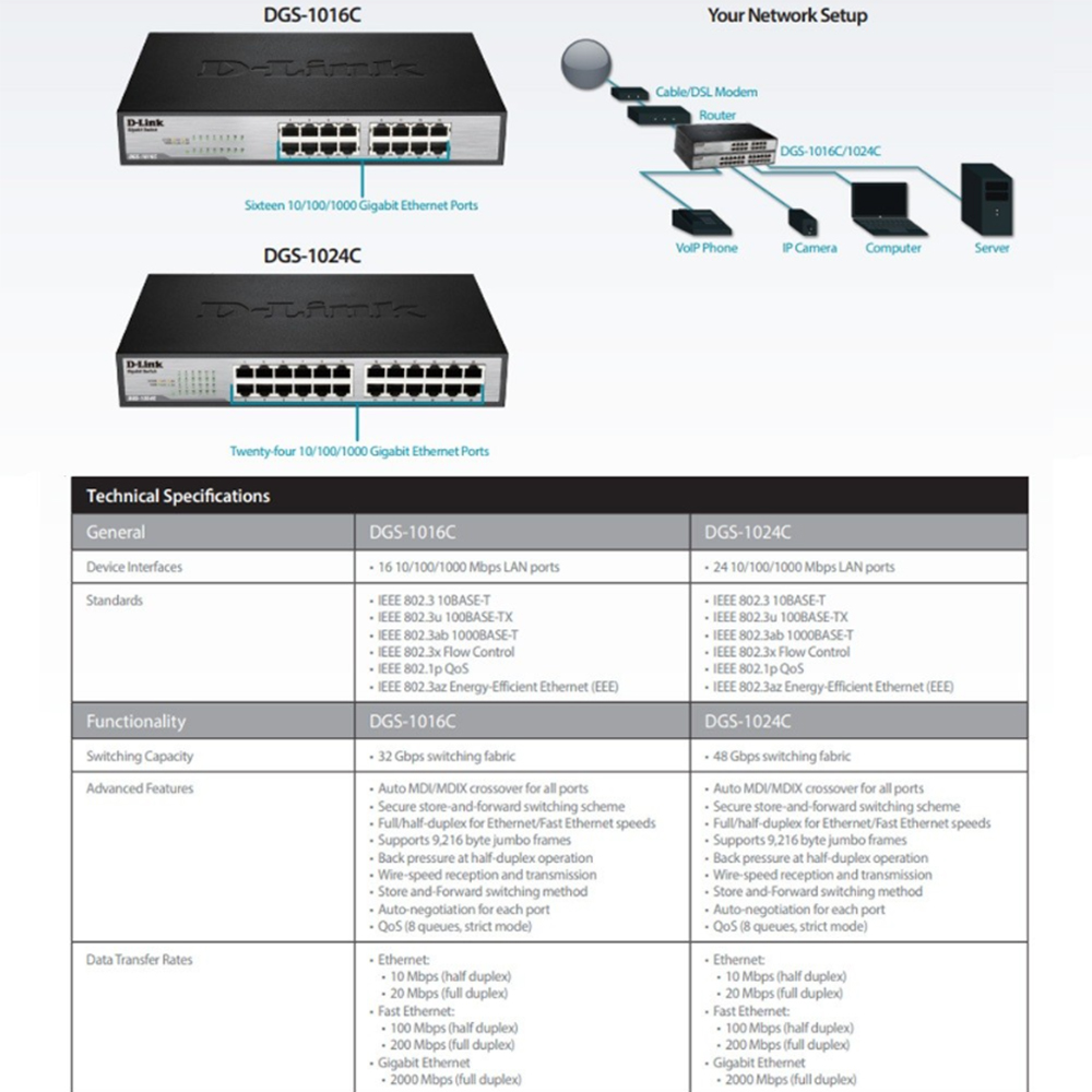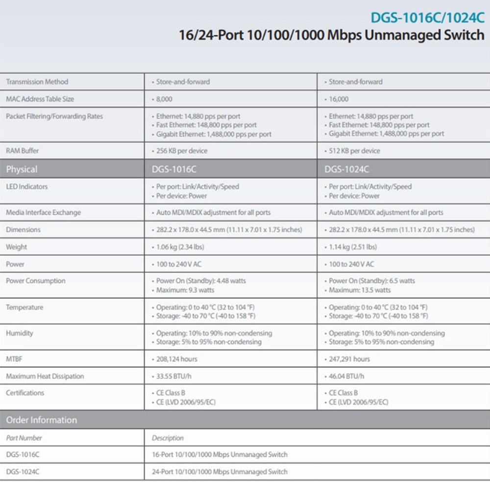D-Link 友訊】DGS-1016C 非網管節能型網路交換器(以新款DGS-1016S出貨)