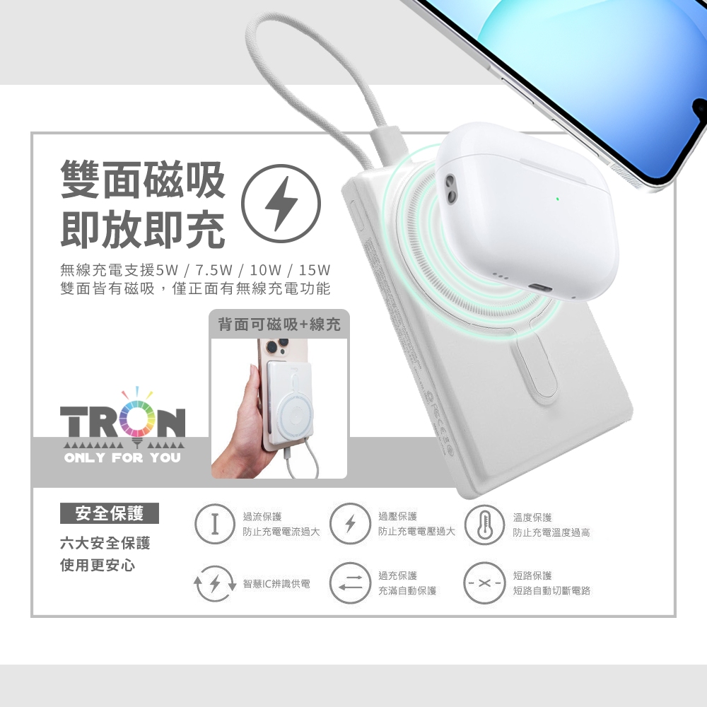 正面無線磁吸 背面強力磁吸設計讓您手機吸附