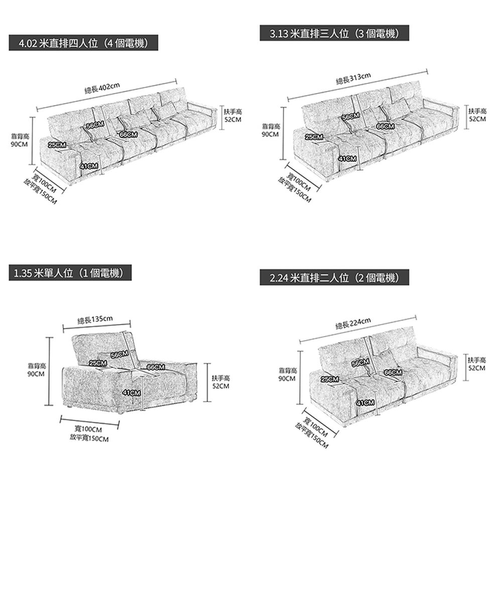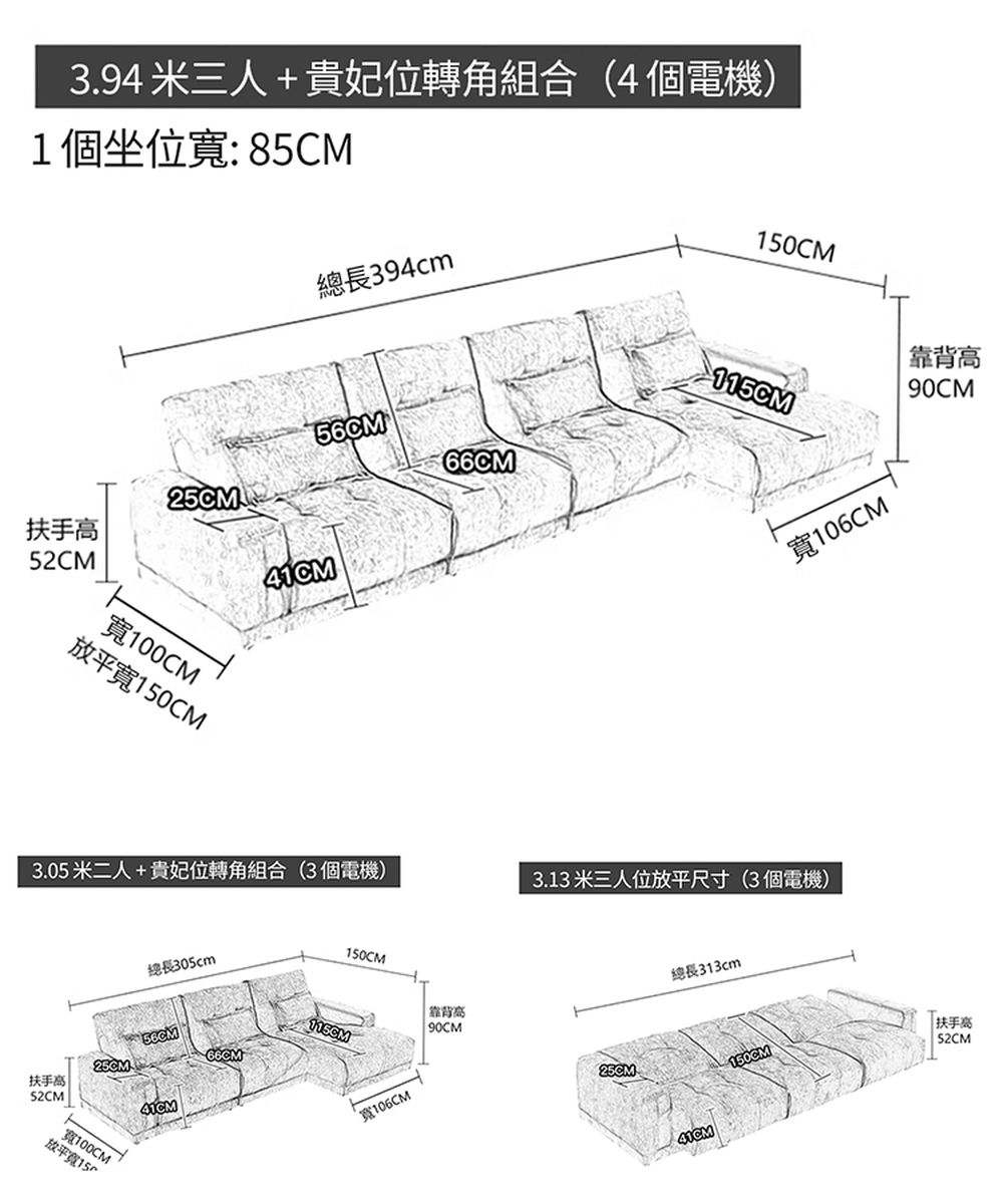 此賣場為313公分三人位(寬313*深100*高90cm),另有其他尺寸賣場