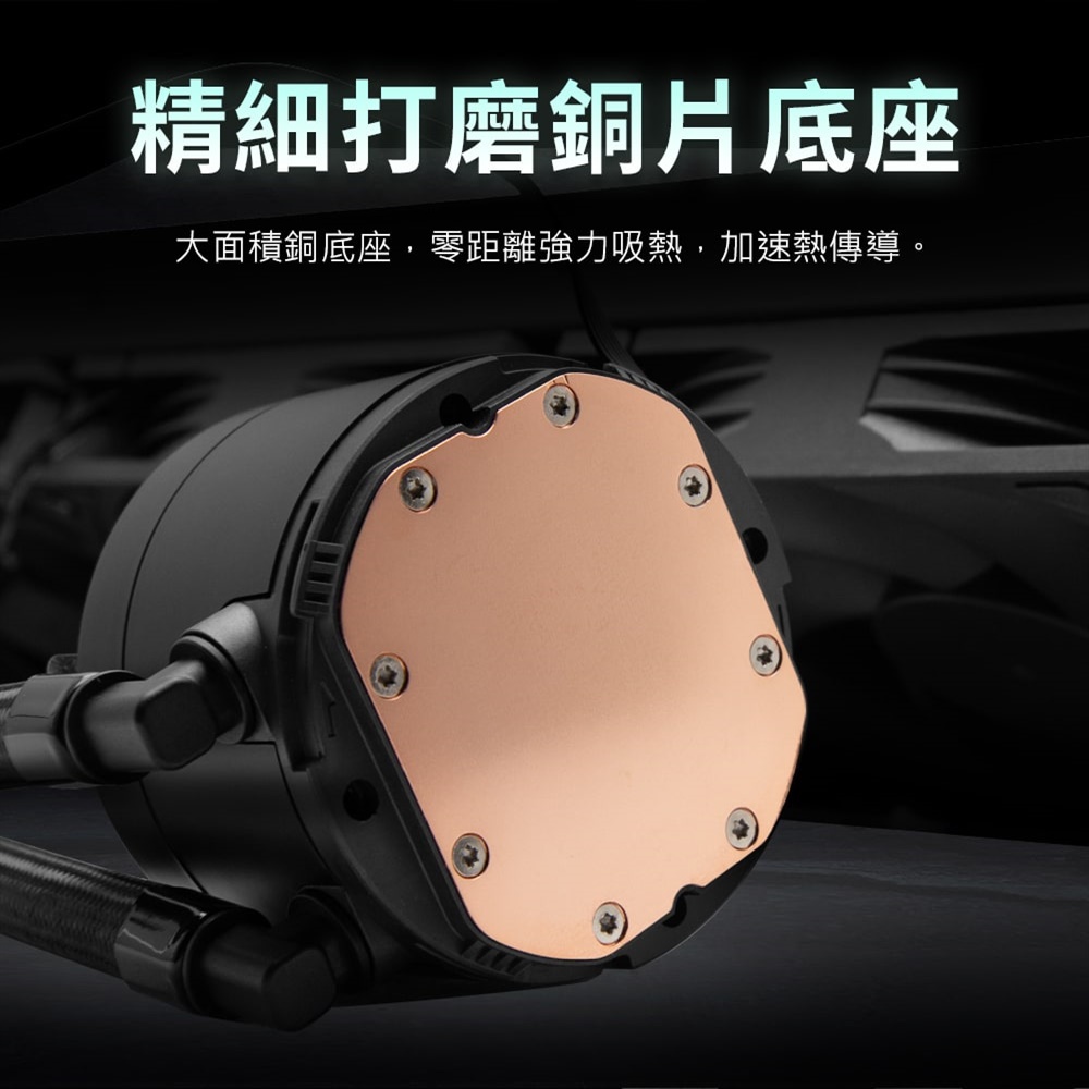 水冷頭材質:全銅底座與塑膠外蓋