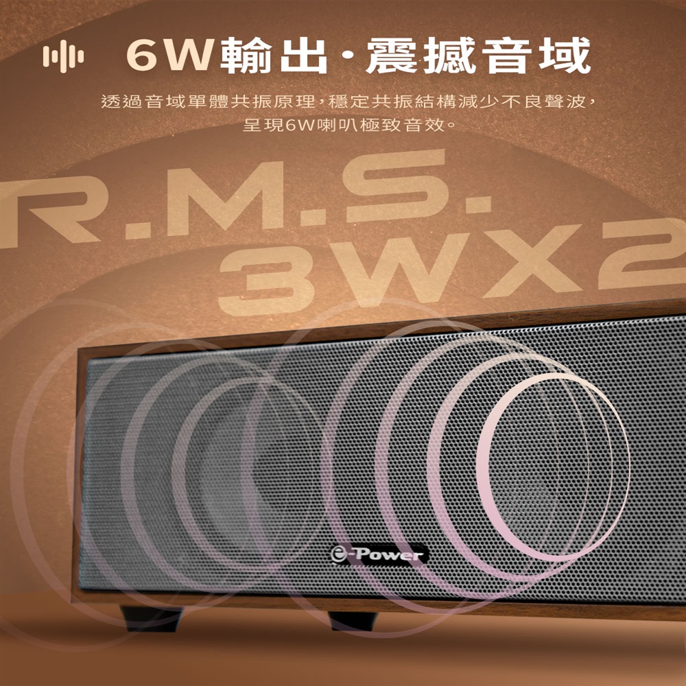 1.震撼音域:透過音域單體共振原理,呈現6W喇叭極致音效