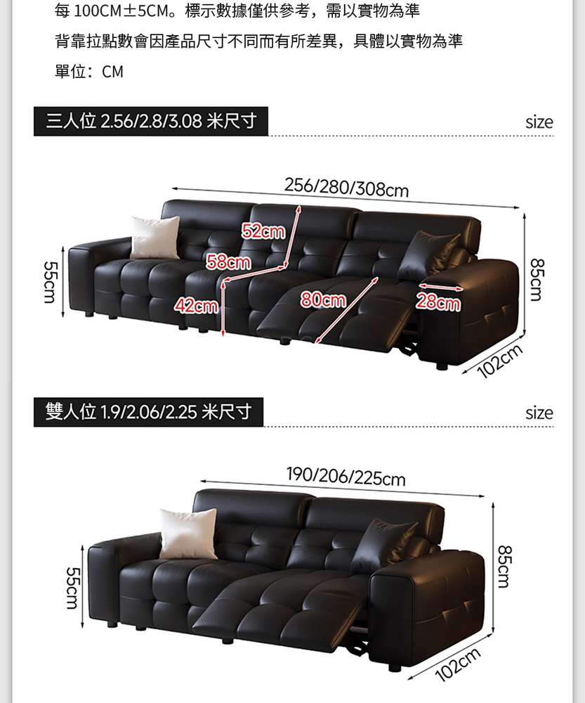 此賣場為225cm雙人位(雙電動)(225*深102*高85cm),另有其他尺寸賣場