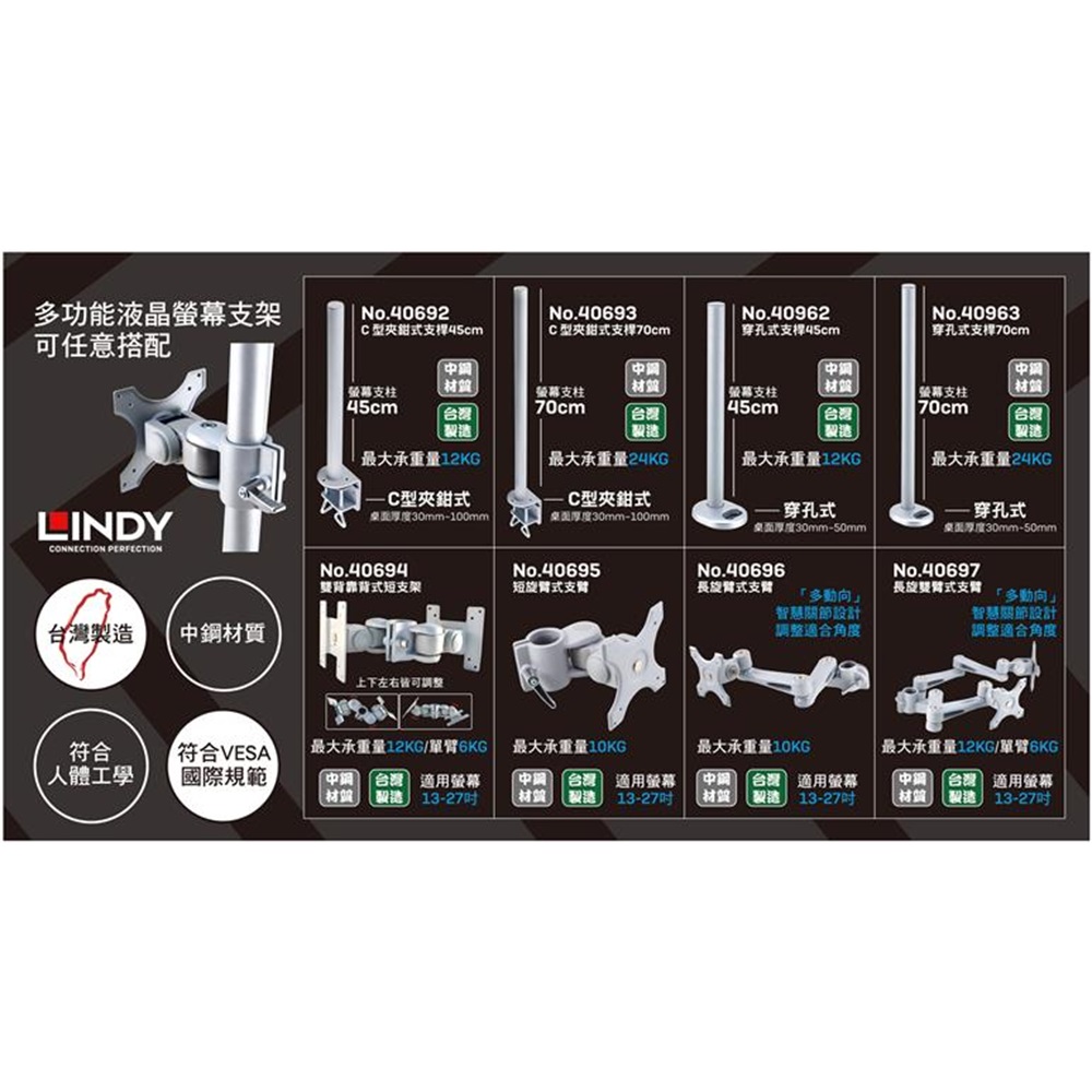 ‧ 原廠型號:40692 ‧ 中鋼鋼材支柱,堅硬耐用,最大可承重12公斤 ‧ 高質感噴沙表面處理 ‧ 台灣設計製造,品質保證 ‧ 可自由選購搭配: 單臂式支臂: 40695、40696、40699、40940、40945 雙臂式支臂: 40694、40697