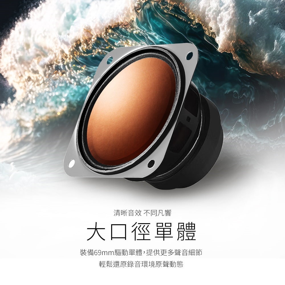 1.震撼音域:透過音域單體共振原理,呈現6W喇叭極致音效