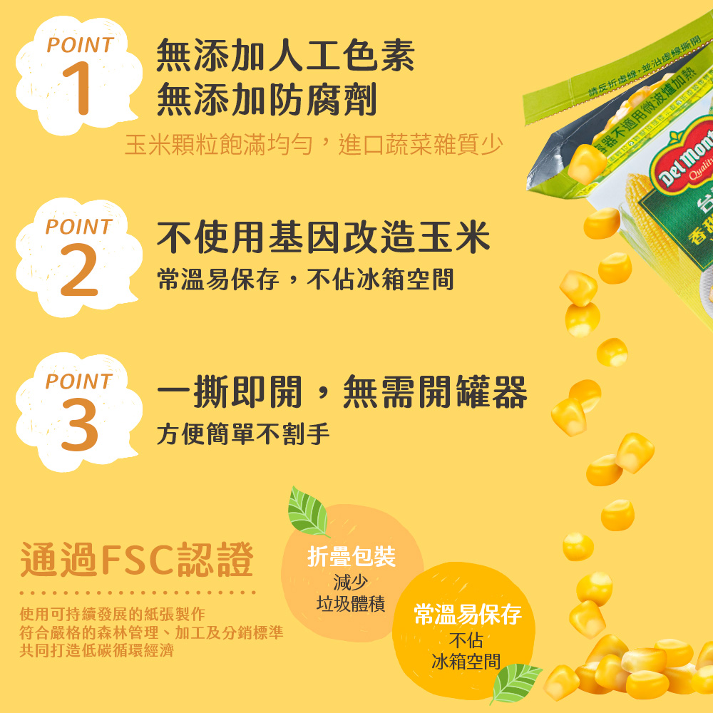 2.守護健康無添加:無添加人工色素,無添加防腐劑,不使用基因改造玉米。