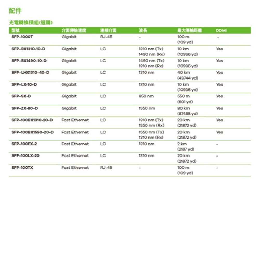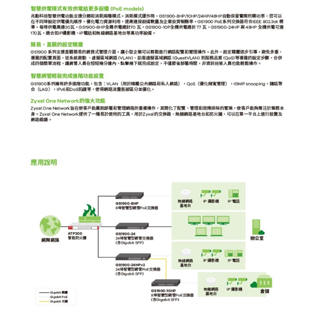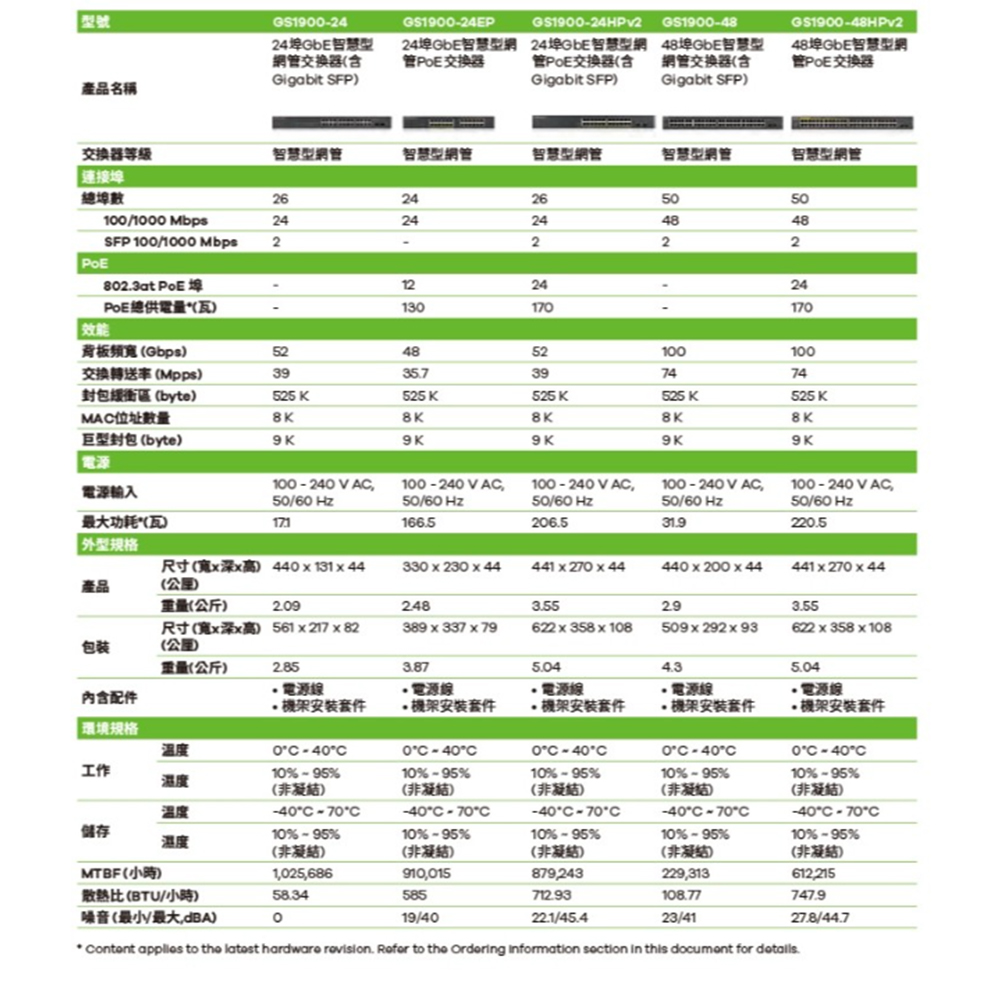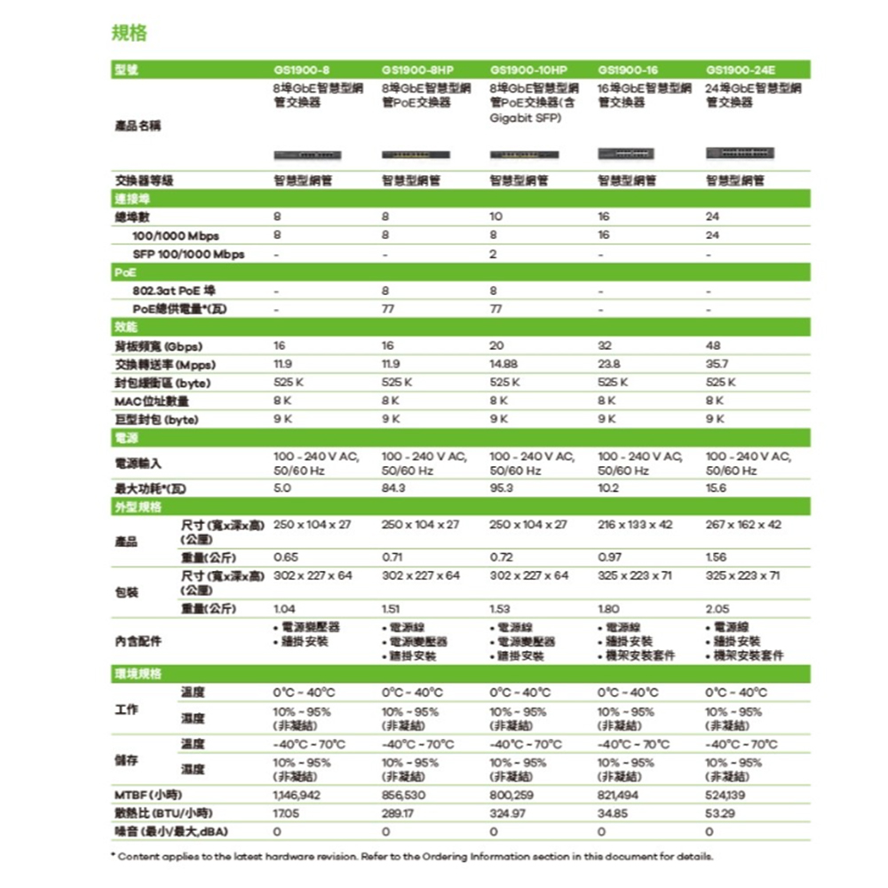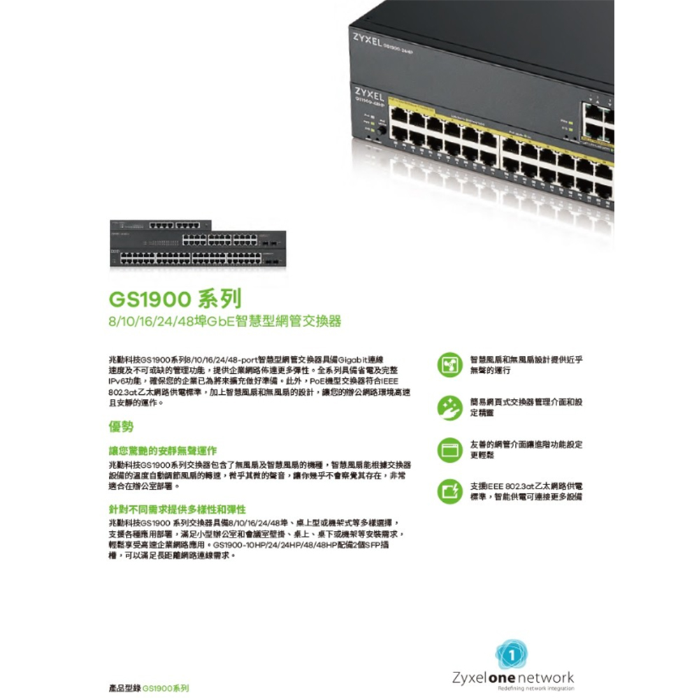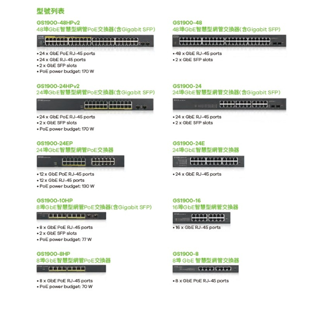 兆勤科技GS1900系列交換器具備8/10/16/24/48埠、桌上型或機架式等多樣選擇,支援各種應用部署,滿足小型辦公室和會議室壁掛、桌上、桌下或機架等安裝需求,輕鬆享受高速企業網路應用。GS1900-10HP/24/24HP/48/48HP配備2個SFP插槽,可以滿足長距離網路連線需求。
