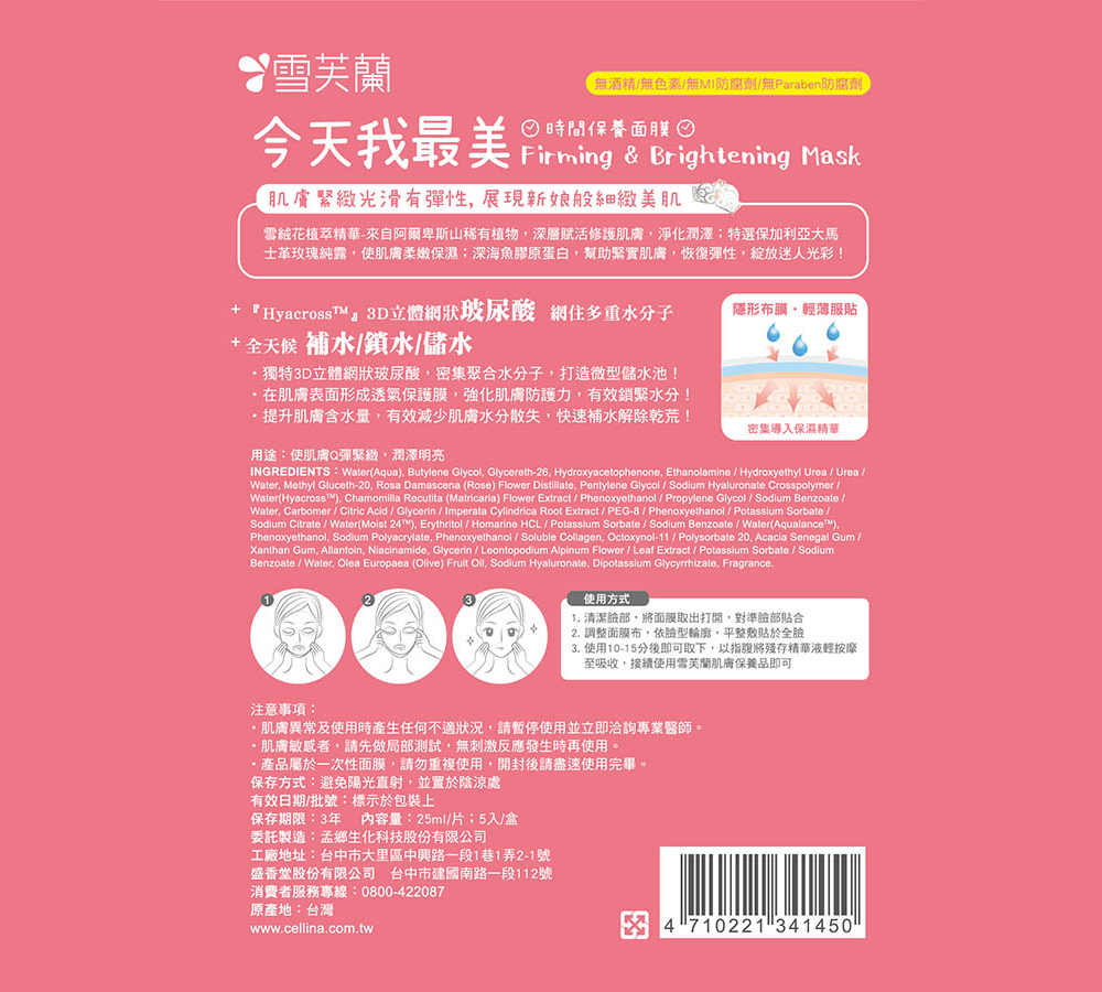 www.cellina.com.tw◎ 製造日期與有效期限,商品成分皆標示於包裝盒上