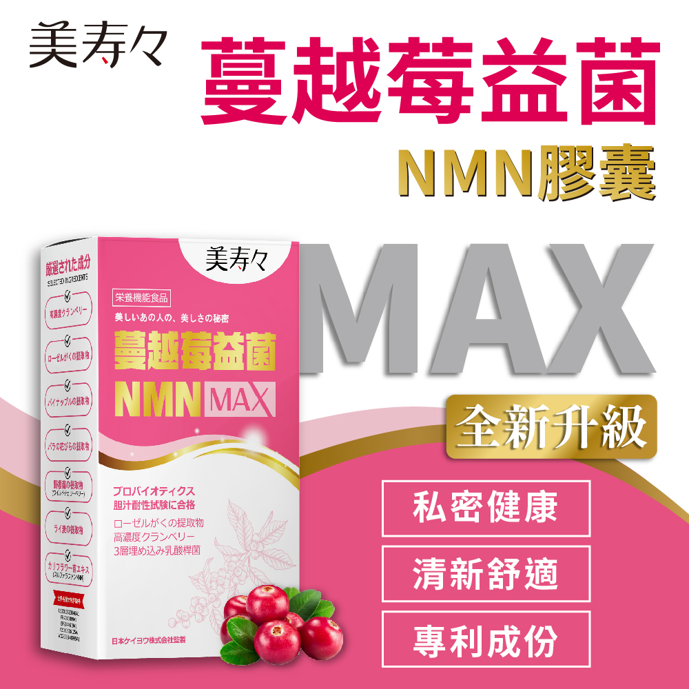 2.商品品名:美壽壽 蔓越莓益菌NMN MAX膠囊30顆/盒