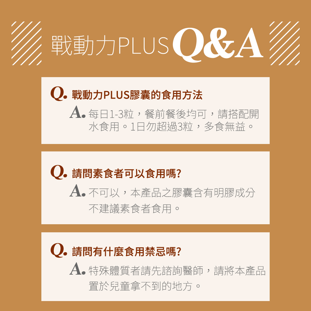 1.商品組合/規格:穆拉德戰動力PLUS膠囊(10粒/盒)x5 2.商品品名:《穆拉德 》一氧化氮戰動力PLUS膠囊5入組 3.商品重(容)量:10粒/盒,570毫克/粒 4.內容物成分(如含有豬、牛成分請加註國別):馬卡、L-精胺酸、蕁麻根萃取物、南瓜籽萃取物、葡萄籽萃取物、維生素C、葡萄糖酸鋅、微結晶狀a-纖維素、二氧化鈦、硬脂酸鎂、乾燥型維生素E50%(乙酸dl- a-生育醇酯、麥芽糊精、辛烯基丁二酸鈉澱粉、二氧化矽) 5.食品添加物名稱:二氧化矽 6.原產地(國):台灣 7.製造廠商或國內負責廠商名稱:亞洲生化科技股份有限公司 8.製造廠商或國內負責廠商地址:台北市內湖區金莊路100號11樓 9.製造廠商或國內負責廠商電話:0800-866-599 10.以消費者收受日算起,至少距有效日期前?日以上:依外包裝標示 11.食品業者登錄字號:B-153960554-00000-6 12.投保產品責任險字號:南山產物保險 備註欄:食用方法:每日1-3粒,餐前餐後均可,請搭配開水食用。