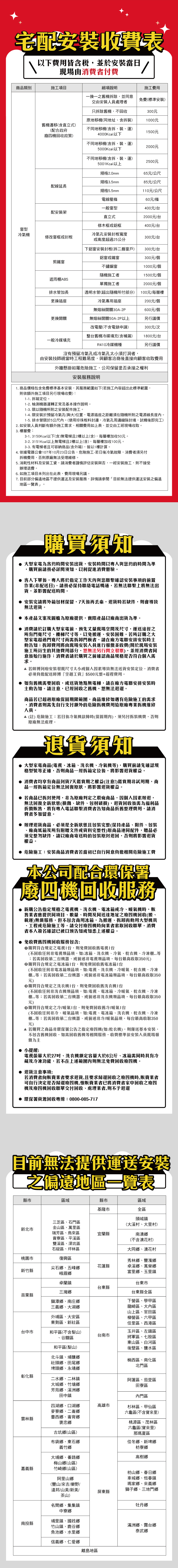 ※ 針對大型商品(含大型家電、視聽設備、預購商品等)之配送與安裝說明: