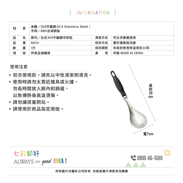 商品材質 :本體/304不鏽鋼18-8 stainless steel;手柄/ABS合成樹脂