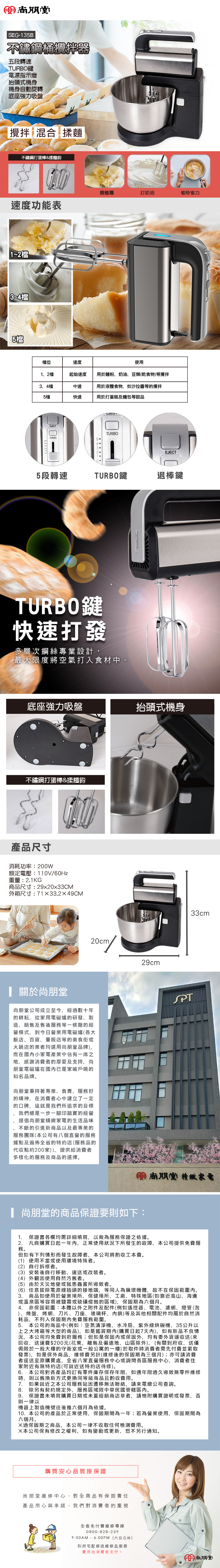 - 配件:主體*1.揉麵鉤*2.打蛋棒*2.說明/保證書*1