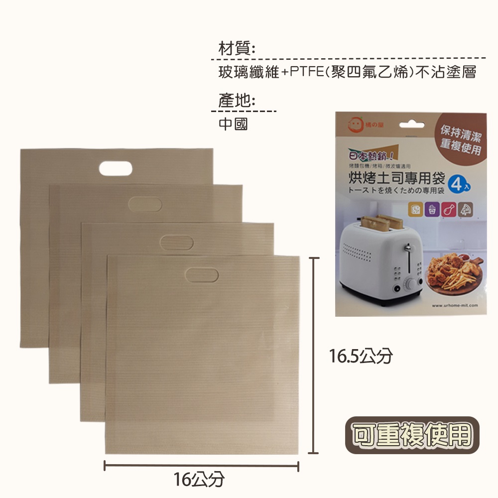 MIKAHOUSE 橘之屋】烘烤土司專用袋(4入/16*16.5cm)
